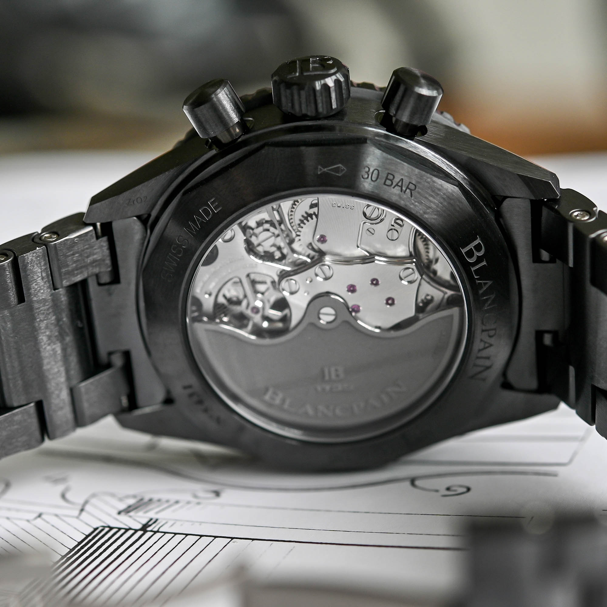 Now, there are various ways to bring a ceramic watch to life. The accessible way is by moulding parts, often resulting in rounded shapes. High-end watchmakers such as Blancpain do it differently by finishing all parts in the same way they do for a metallic case. This involves polished and satin brushing the parts by hand with diamond tools, a time-consuming process given the hardness of ceramic.
