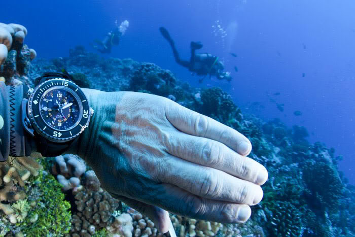 Designed in the early 1950s by Jacques Fiechterto and later refined to meet the requirements of Captain Bob Maloubier of French elite combat frogmen, the Fifty Fathom is one of the watches that defined the standards of the modern dive watch. The MIL-SPEC was introduced in 1957-58 and was adopted by American Navy Seals. It incorporates a humidity indicator. The color disc on the dial allows to check the integrity of the watch. If any water were to seep into the case, the disc color would change from white to red as a warning to the wearer.