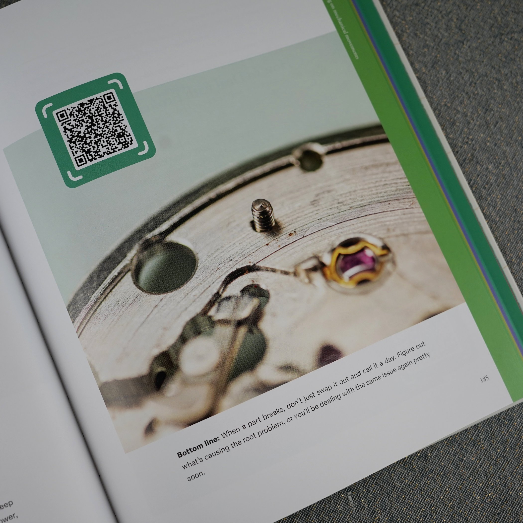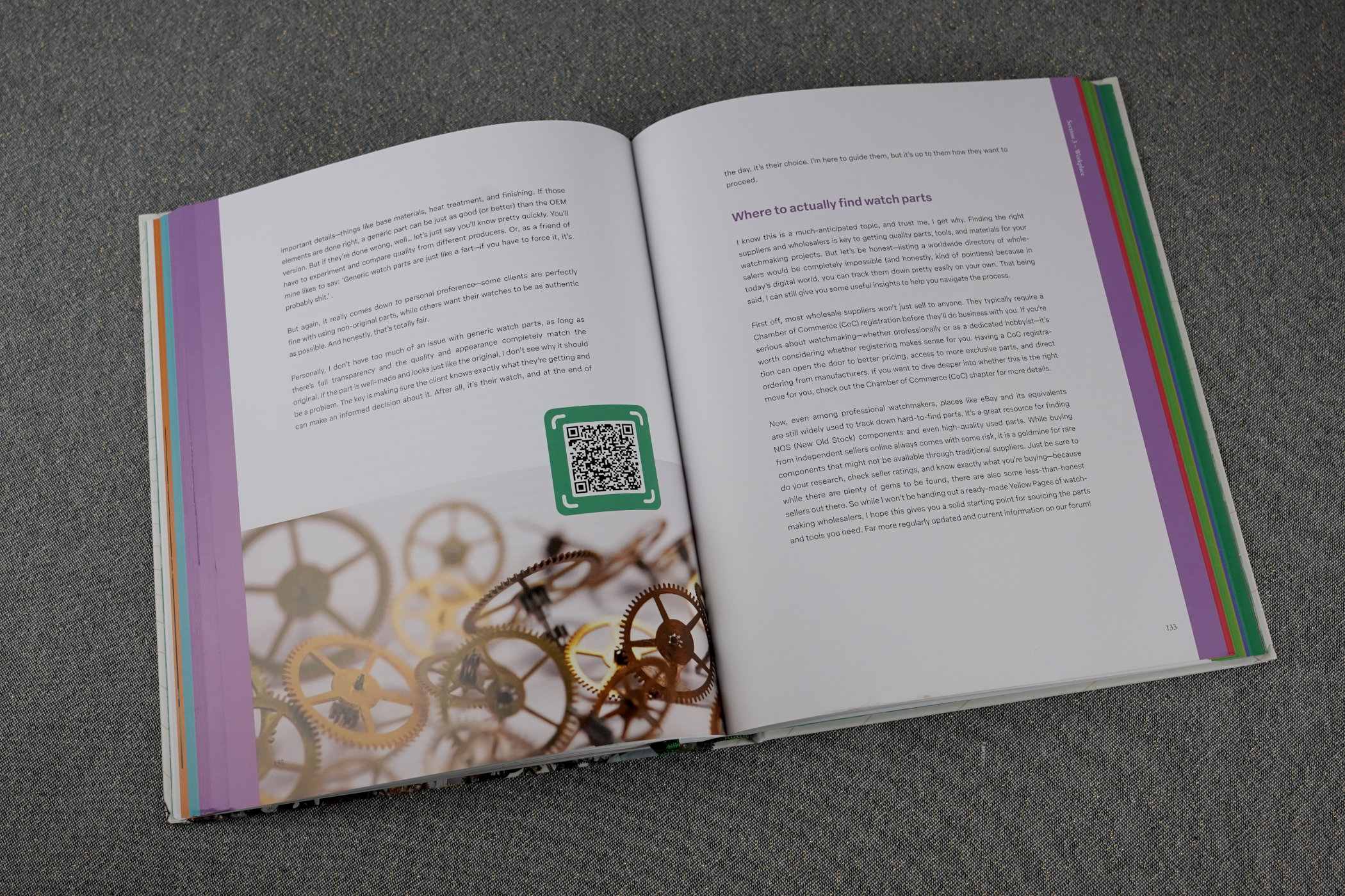 And don’t be fooled into thinking this is another very academic study into the entire history of watchmaking. Instead, it’s an easy-to-understand, humourously written multimedia experience that explains everything you need to know about watchmaking. It not only covers the technical aspects of what goes into a movement, but also often-overlooked elements such as essential tools and machines, how to use your body, arranging your workshop, sourcing watch parts, making a profession out of it, and so on. There are over 100 QR codes that take you to all sorts of exclusive videos for more in-depth and visual explanations, which are very practical. I, for one, am much more a learning-by-seeing/doing kind of person than gobbling up theoretics. The book is also endorsed by the British Horological Institute, and there will be future content to check out after you have received yours.