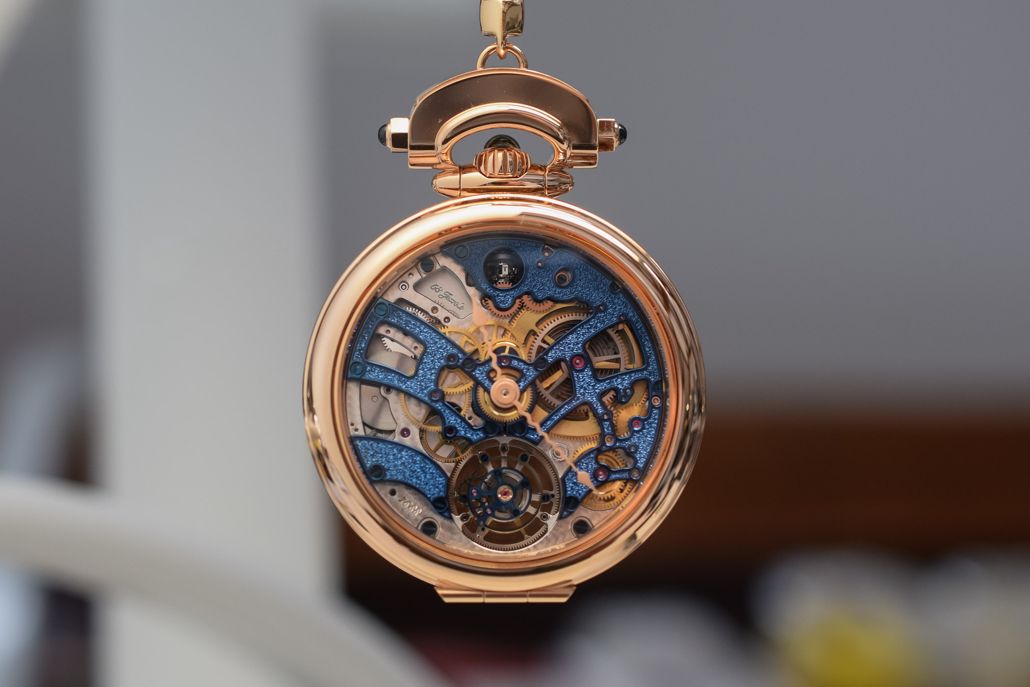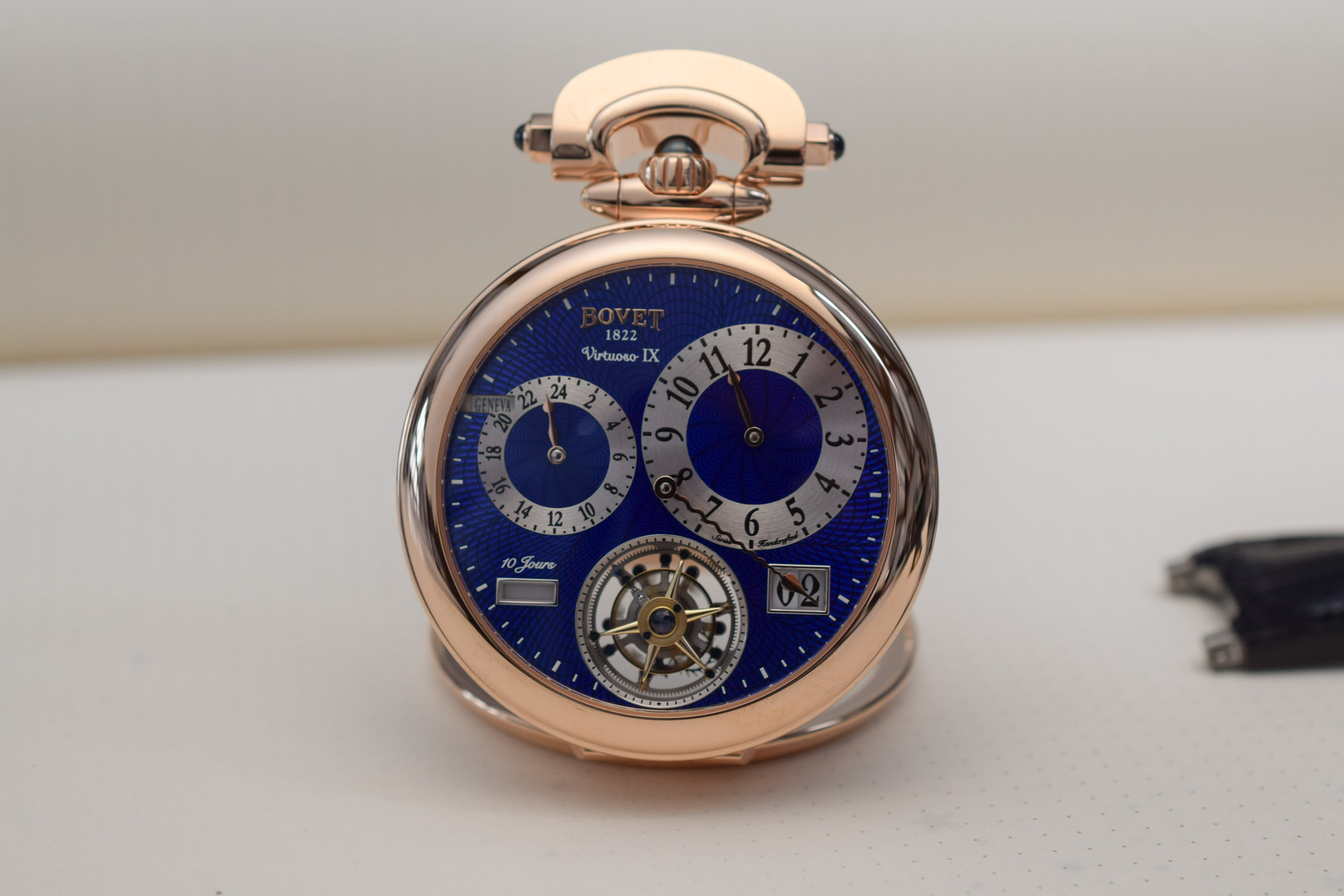 The Virtuoso IX will be available in red gold, white gold and platinum and comes on an alligator strap with a red or white gold ardillon buckle and a red or white gold chain (for the pocket watch mode). Price to be confirmed.