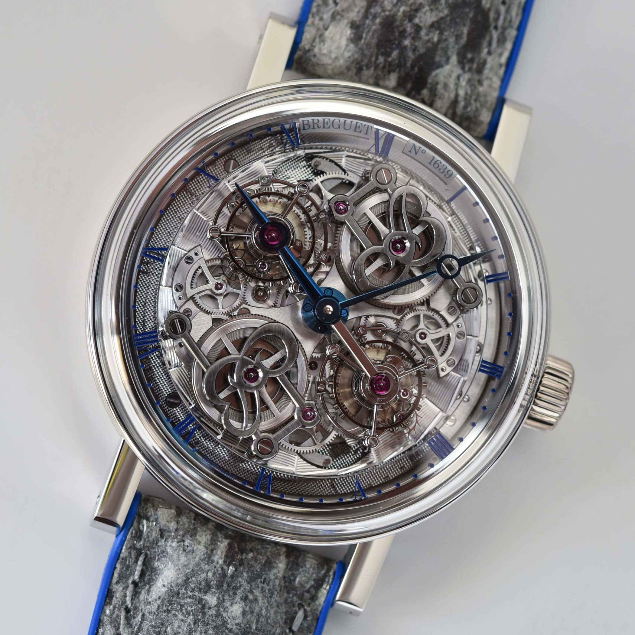 As the brand that bears the name of the inventor of the tourbillon, Breguet has relied on this complication in numerous models, from “simple” tourbillon models to some more complex watches with additional complications. Still, this specific regulating organ remains a signature feature of higher-end Breguet watches. Introduced in 2005, the Double Tourbillon -reference 5347 – is the pinnacle of the tourbillon watches at Breguet. It features not one but two regulating organs, connected together by a differential, where the main plate of the movement acts as a rotating dial to indicate the hours. And this combination of elements – the tourbillons and the differential – is there to average out flaws due to two factors, position and rate errors… but more on that later. Let’s now have a look at the latest edition of the Breguet Classique Double Tourbillon, a bold, very demonstrative skeletonised model, the “Quai de l’Horloge”.