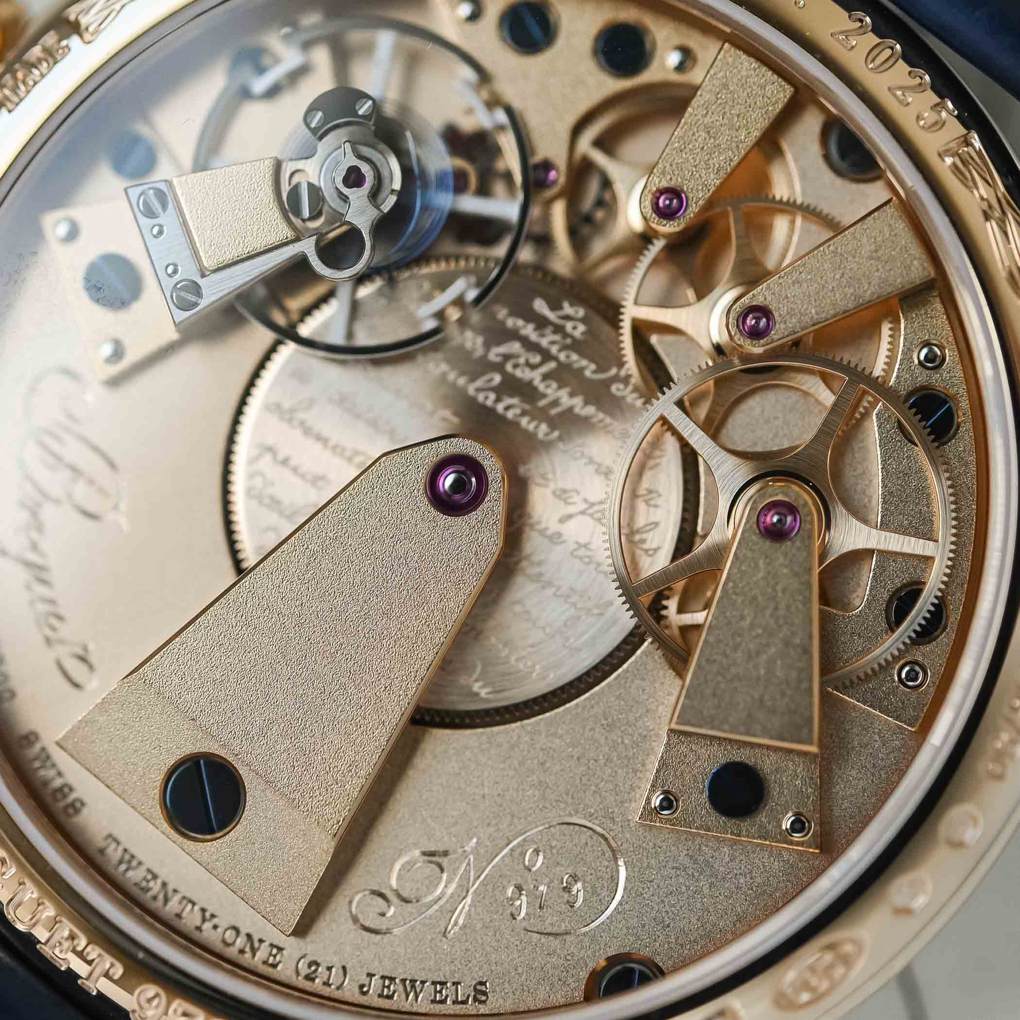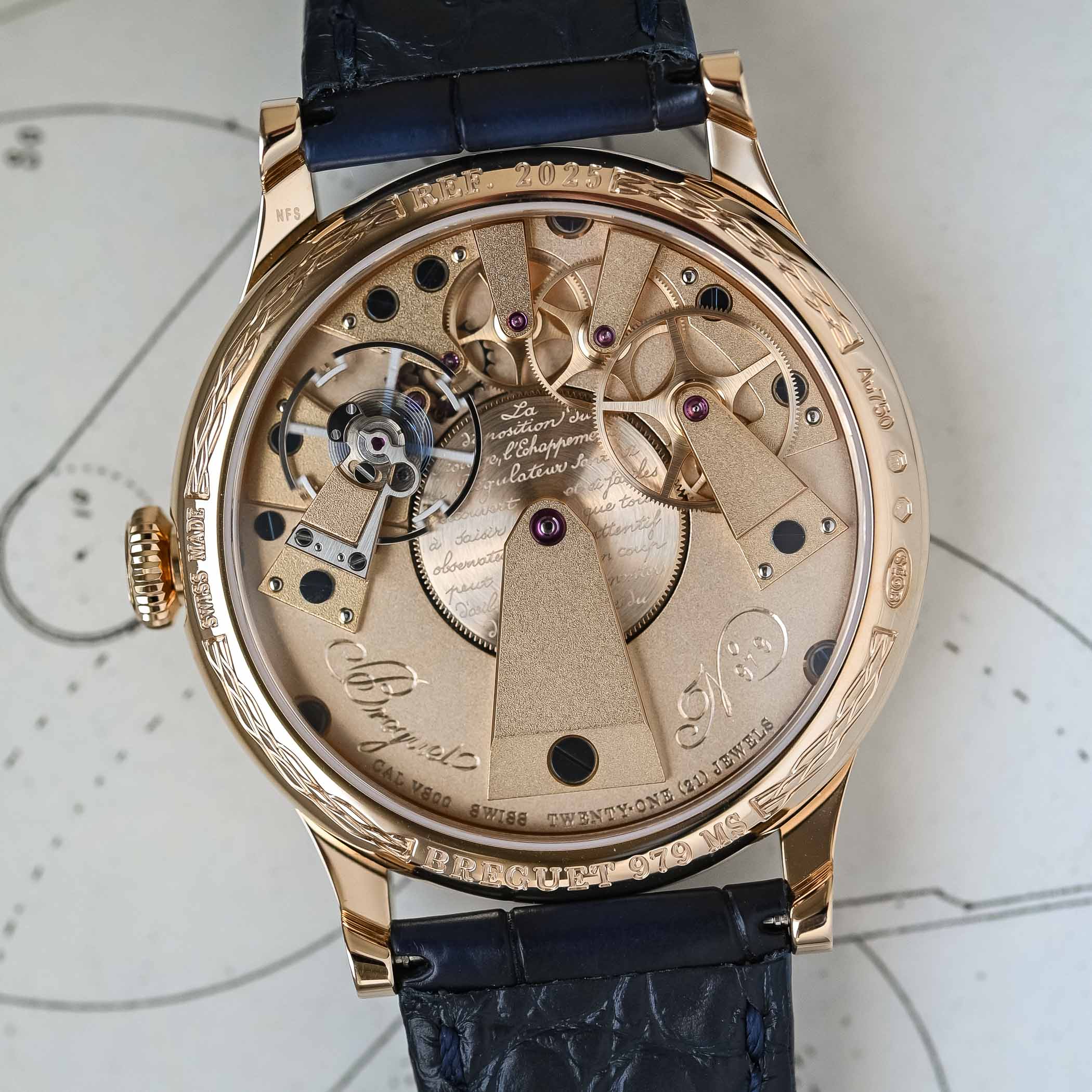 Modernity hasn’t been forgotten – specifically since the new CEO, Gregory Kissling, is well known to have been behind most of the recent innovations at Omega. The case of the Breguet Classique Souscription 2025 is bringing a new alloy to the brand, named Breguet gold. Composed of 75% gold, this yellow gold alloy is enriched with silver, copper and palladium to ensure its resistance to discolouration and its stability over time. It also has a specific brilliance and a slightly more muted yellow hue than classic yellow gold – not that different from Moonshine gold used at Omega (coincidentally… or not)