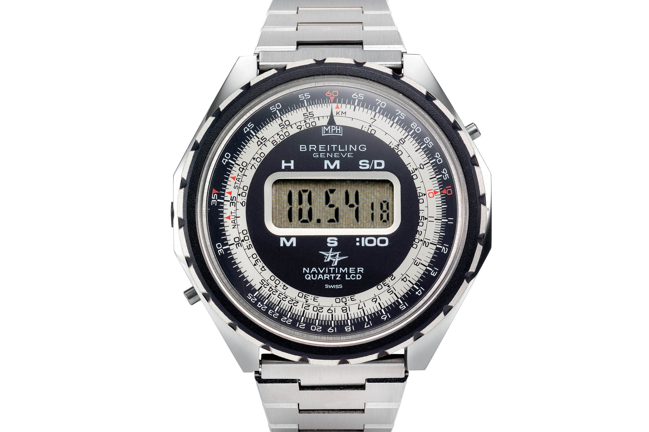 As you can see, there have been watches with the name “Navitimer” printed on the dial with totally different styles. Agreed, this was certainly not a common thing and the Navitimer collection was first and foremost a pilot’s watch collection – and the new Navitimer 8 is first and foremost a pilot’s watch. Yet, if you look in older catalogues, not all Navitimer watches featured a sliding rule either. Most were definitely pilot-oriented, yet the 1970s and the 1980s brought some more original watches. For instance, look at these two watches below – both are quartz/digital, both feature intriguing shapes, one even comes without the sliding rule.