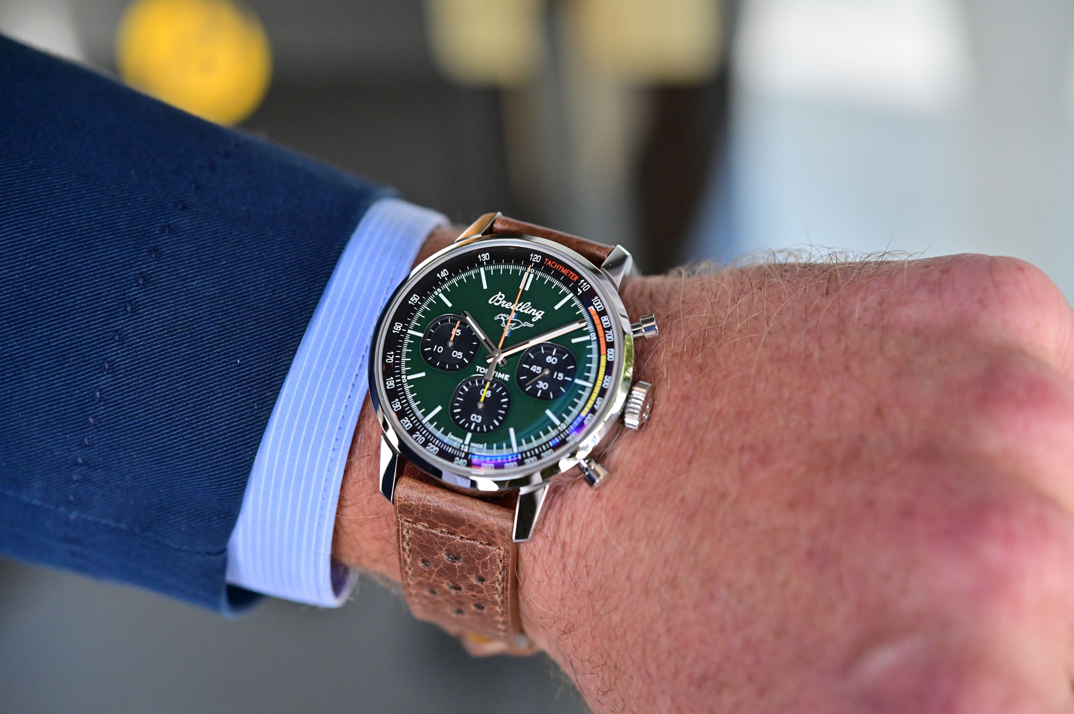 The central chronograph seconds hand is red, and the hour and minute hands are treated with Super-LumiNova. Like the Corvette and Mustang, the Shelby Cobra is fitted with a COSC-certified Breitling calibre 41 (also ETA based with a Dubois-Depraz chronograph module), an automatic 1/4th of a second chronograph with a power reserve of 42 hours.