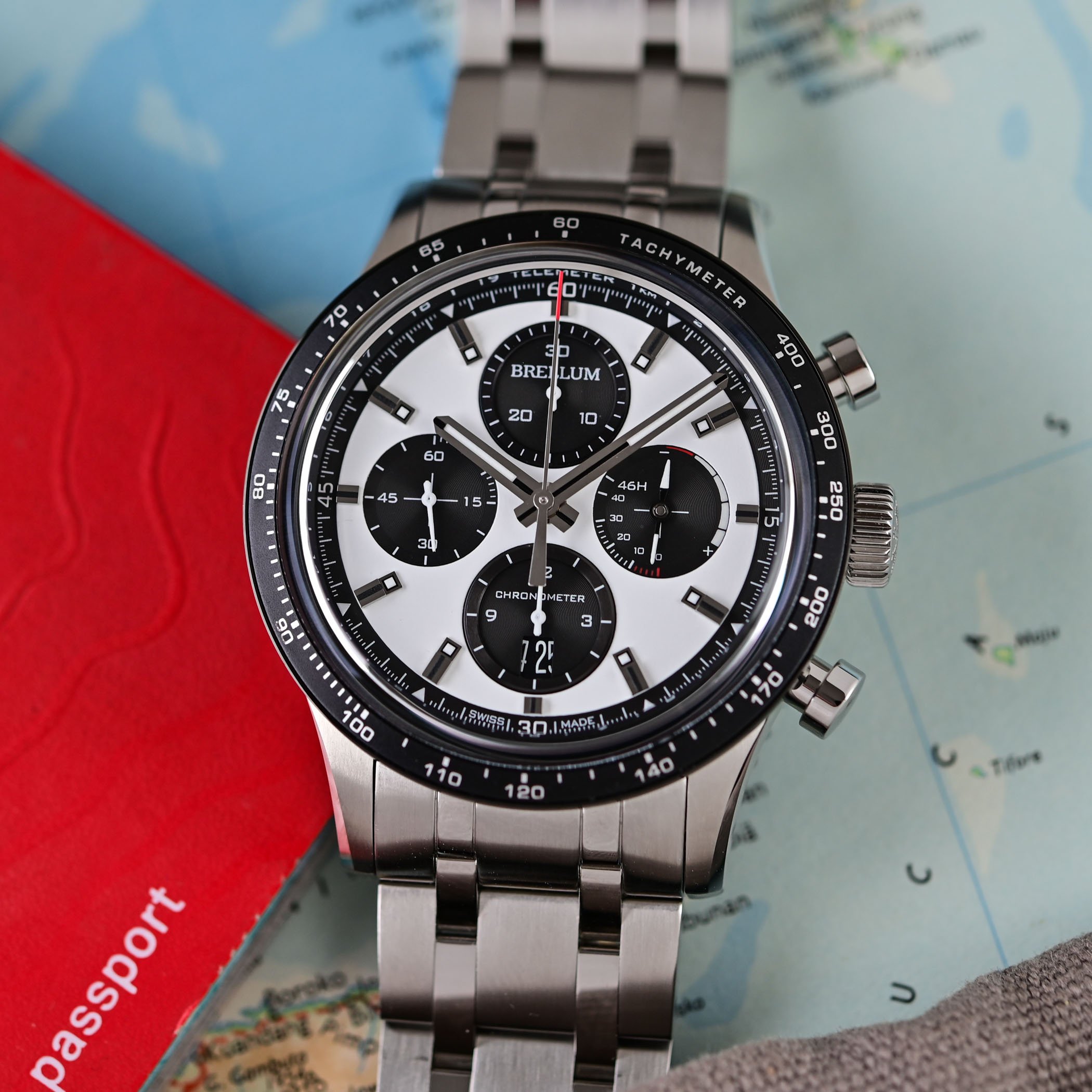 Independent and intentionally small, Brellum is the brand of fourth-generation watchmaker Sébastien Muller, and is built on three constants: COSC certification across the board, full movement decoration under a domed exhibition back, and direct-to-consumer production capped at 299 pieces a year. The catalogue splits into clear families. The Duobox, with its twin box sapphires and clean layouts; the sport-forward Pandial with external tachymeter bezels and busier scalework; the Pilot Power Reserve line, which adds reserve indicators without sacrificing legibility, and other series.