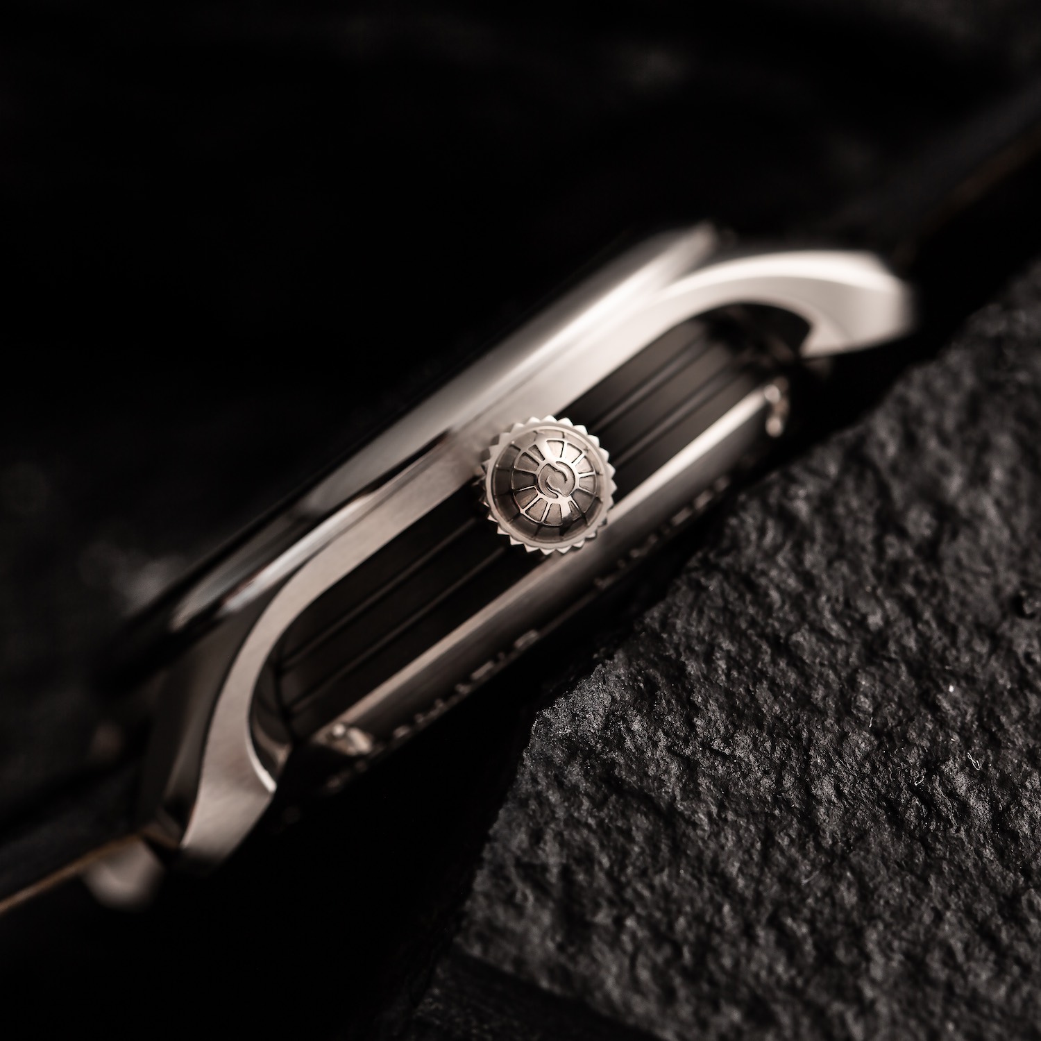 The 41mm Bremont Hawking Limited Edition watch features luminous-coated hour and minute hands that taper to a fine point, while the hour markers are rectangular baton-shaped. A retrograde second hand is located at 6 o’clock balanced by the large double-date window display at 12 o’clock. Inside the case of the Bremont Hawking is the new chronometer-certified BE-33AE which provides a 42-hour power reserve. The self-winding calibre is concealed behind a unique hand-finished caseback that depicts the positioning of the stars in the sky above Oxford on 8th January 1942 – the day of Hawking’s birth. At the centre of the design is a piece of meteorite symbolising the cosmos.
