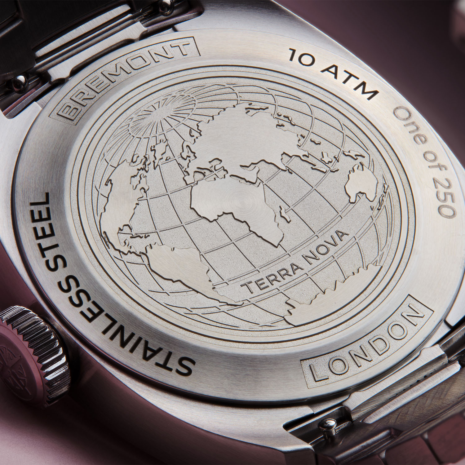 Worn exclusively on a 90L steel bracelet, with a folding clasp and quick-change system, the Terra Nova 38 Pink is released as a limited edition of 250 pieces, priced at EUR 3,600 or GPB 3,000. For more details, please visit Bremont.com.