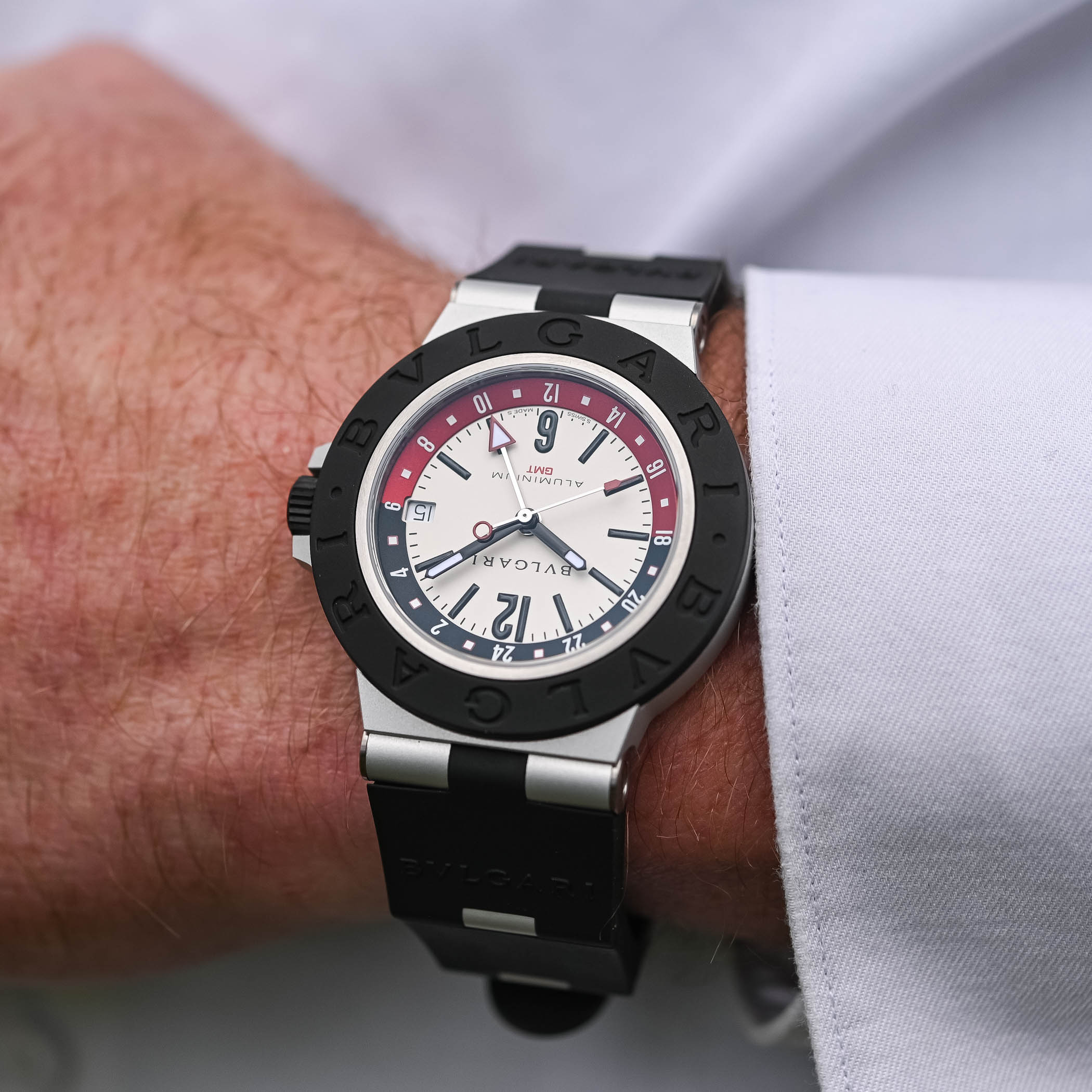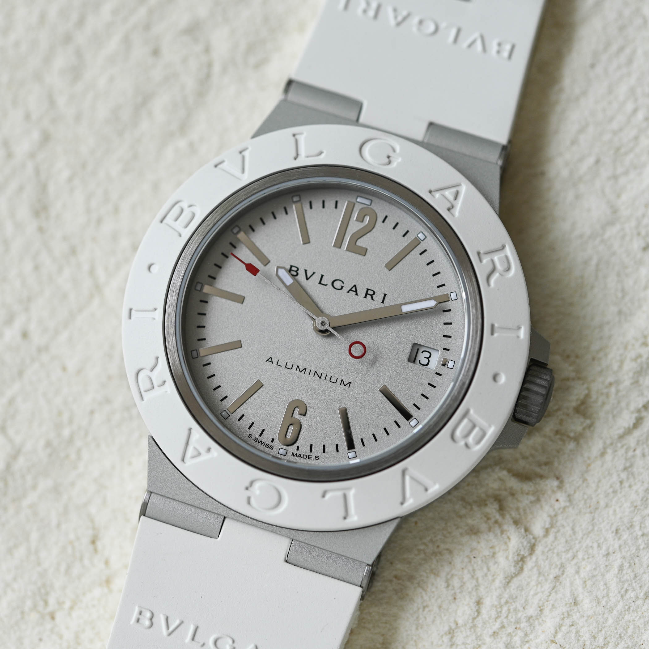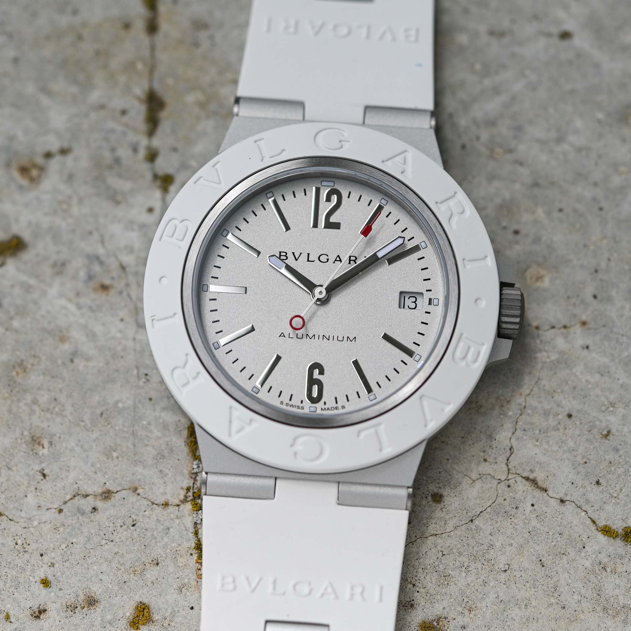 While the combination of rubber and aluminium might not strike us as being particularly vanguard today, back in 1998, this mix was unconventional. Admittedly, Hublot’s Italian founder Carlo Crocco shocked Baselworld in 1980 with his gold watch and black rubber strap, but Bulgari went one step further and produced a case made from aluminium, a lightweight metal usually relegated to bezels.