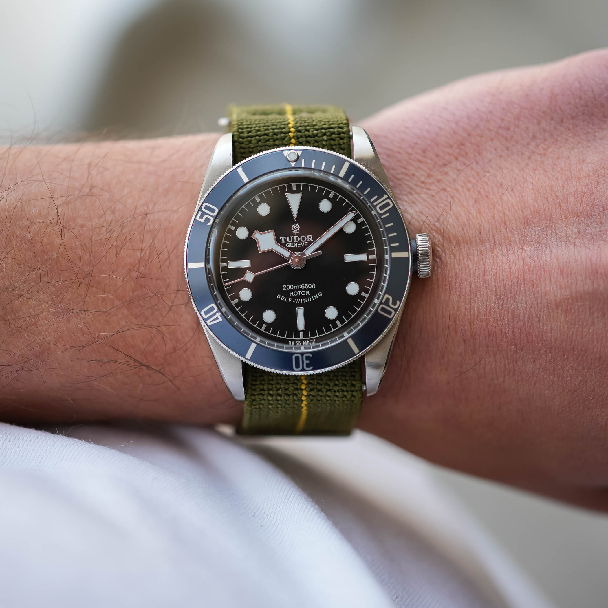 Lastly, an option that I recommend is single-piece elastic straps, such as those made by ErikasOriginals. Inspired by the straps used by the French Marine Nationale on their MN Tudor watches (these were made from elastic parachute braid and parachute hardware), these are durable, breathable, fast-drying and, last but not least, extensible. They are also adjusted without increments, meaning that you can fit them perfectly or enlarge them slightly during the day. As far as it goes, it is my preferred choice for a summer watch.