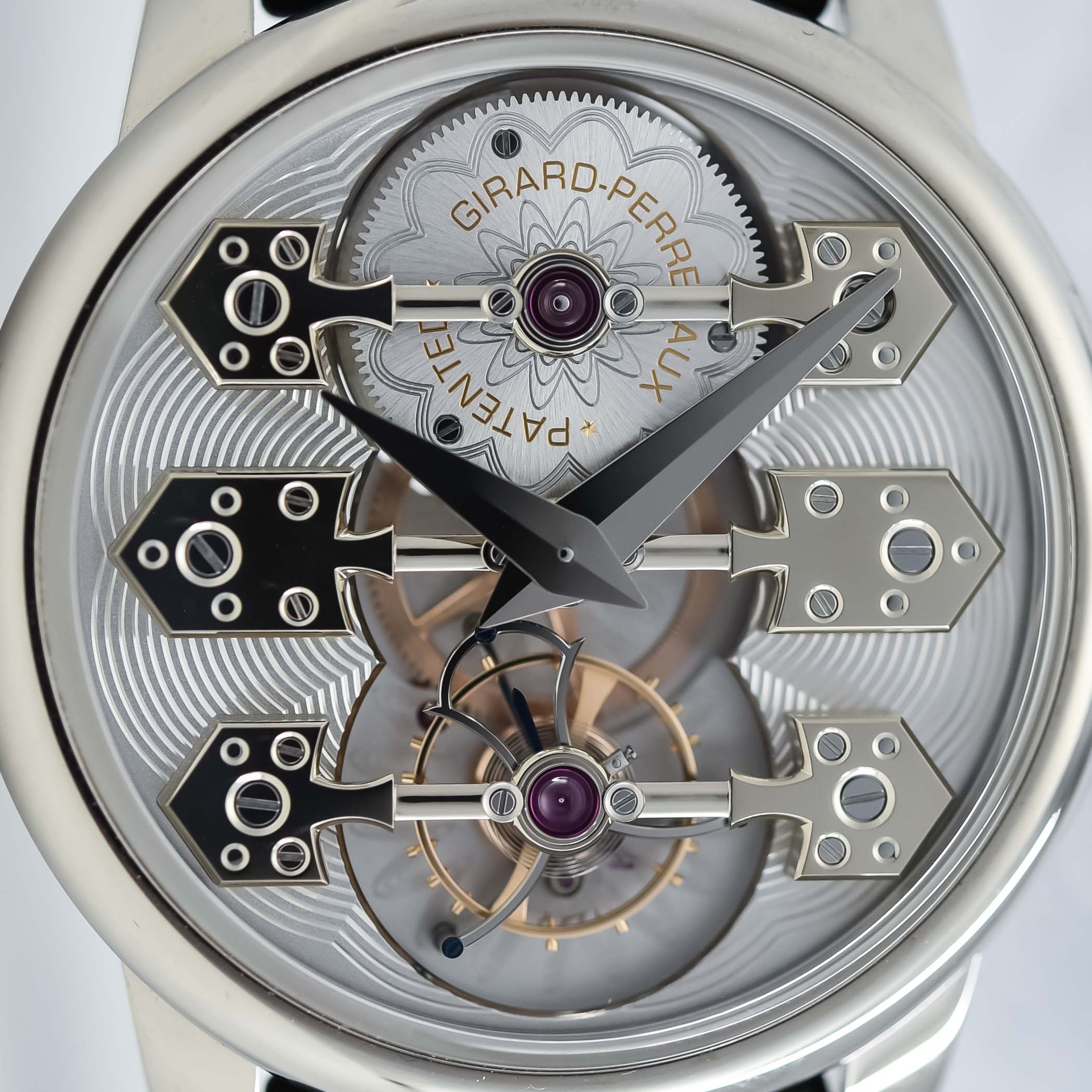 Quick facts: 44mm x 14.55mm – white gold case – calibre GP09400-0016, in-house – automatic with platinum micro-rotor – hours, minutes, small seconds on the tourbillon – alligator strap with gold folding buckle – CHF 212,000