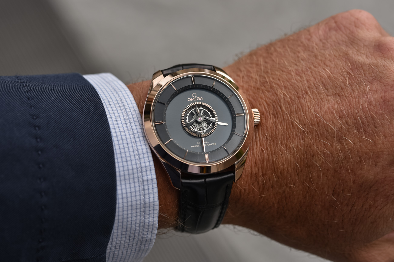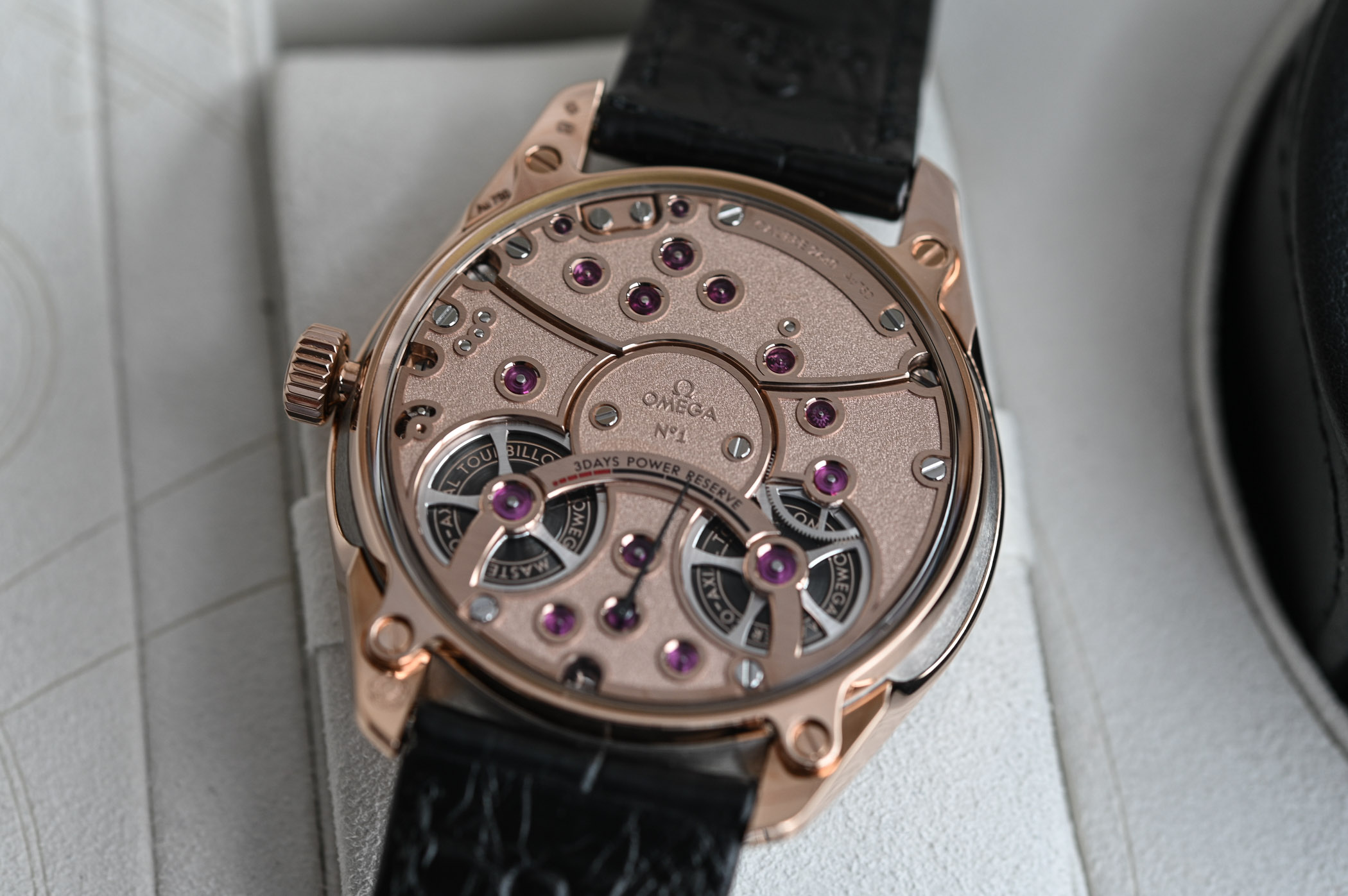 Quick facts: 43mm – Sedna gold and Canopus gold case – calibre Omega 2640, in-house – hand-wound – hours, minutes and one-minute central flying tourbillon – black alligator strap – CHF 162,750
