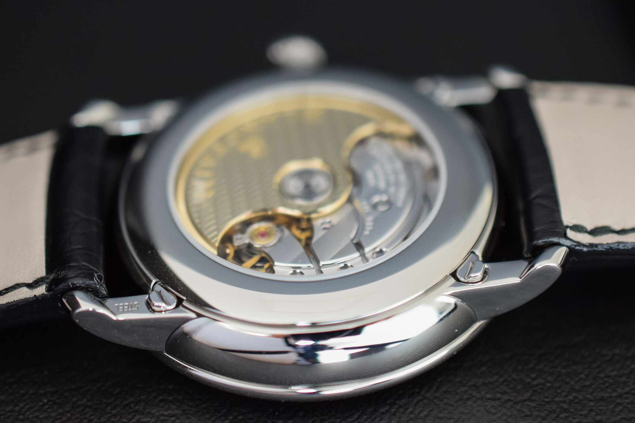 Even though the design has been updated, the Villeret Quantieme Perpetuel remains a very classic and elegant piece that will look great with business attire, and never go out of fashion. Mechanically, there’s the mandatory in-house automatic base movement, with a slim profile and a comfortable 3-day power reserve, but also some tricks that make this watch super-safe and easy to use. It comes with complete freedom to adjust every single indication at any time of the day without risk of damage. And it features unobtrusive correctors, hidden under the lugs, to let you perform the adjustments with your fingertip.