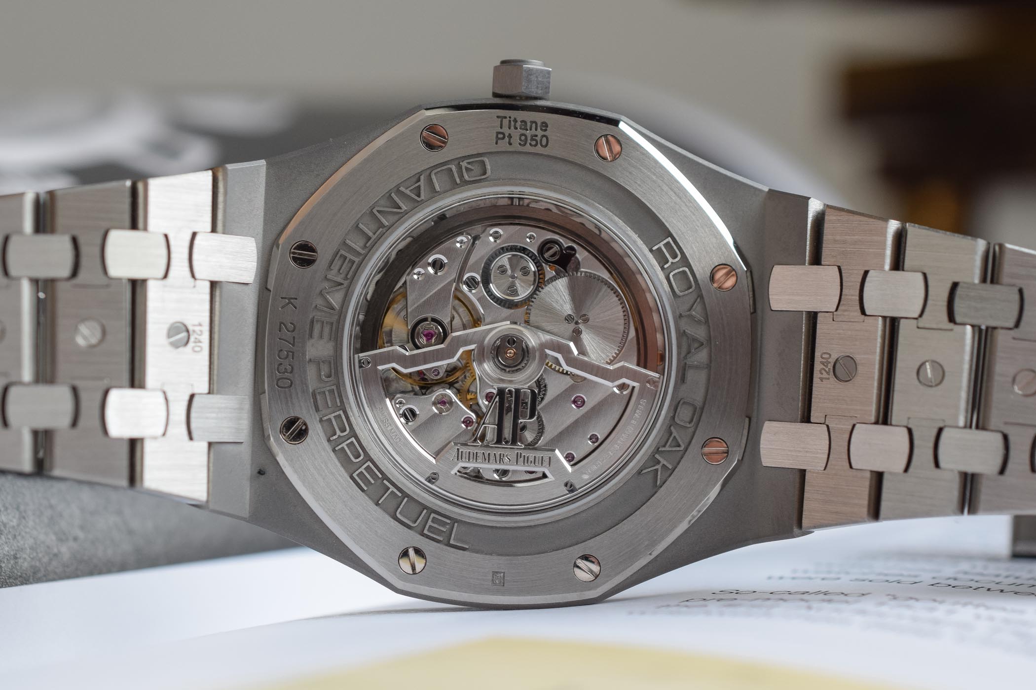 Quick facts: 41mm diameter x 6.3mm height – grade 5 titanium and 950 platinum case – Calibre 5133, in-house – automatic ultra-thin perpetual calendar – titanium and platinum bracelet – ref. 26586IP.OO.1240IP.01 – CHF 140,000