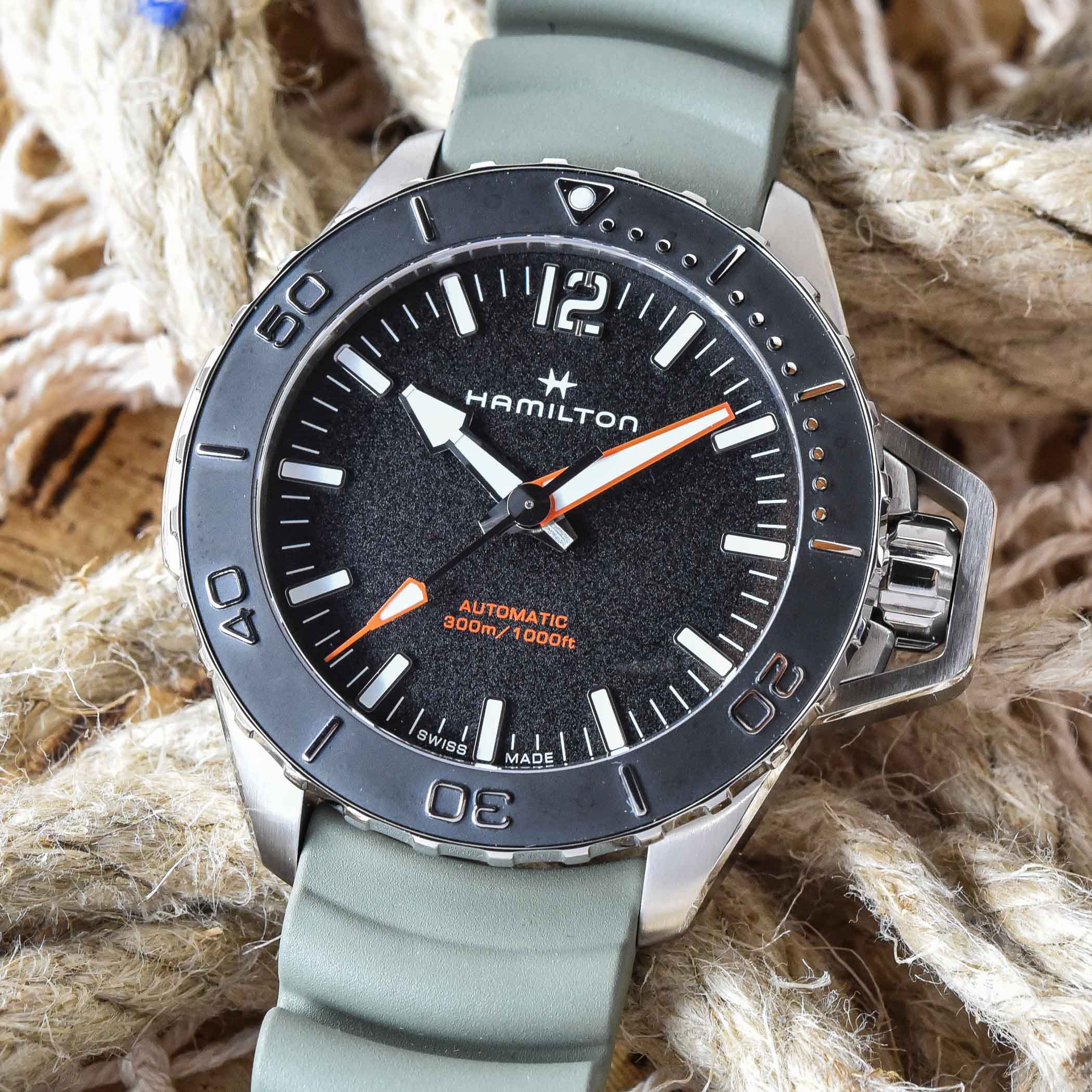 A few weeks ago, Hamilton re-launched one of its most powerful watches, the Khaki Navy Frogman. Usually, we tend to associate the brand with cool, vintage military-inspired watches. Well, this one isn’t such a watch. It’s a big and bold, ultra-robust dive watch made for adventures. Still, there are some elements that recall the military past of the brand, such as the canteen-style screw-down crown – which has been modernized. The rest of the watch has been drastically redesigned compared to the previous iterations, for a far stealthier look, with more modern attire. The watch is large, at 46mm in diameter, but also highly protected and WR to 300m with a helium valve. The new dials are in line with the new stealthy vibe, with matte surfaces. Inside, you’ll find the Powermatic 80 movement, with extended power reserve and Nivachron balance spring. Available in steel with either a bracelet or a rubber strap, the collection also includes a PVD black edition. And it’s available from EUR 1,175.