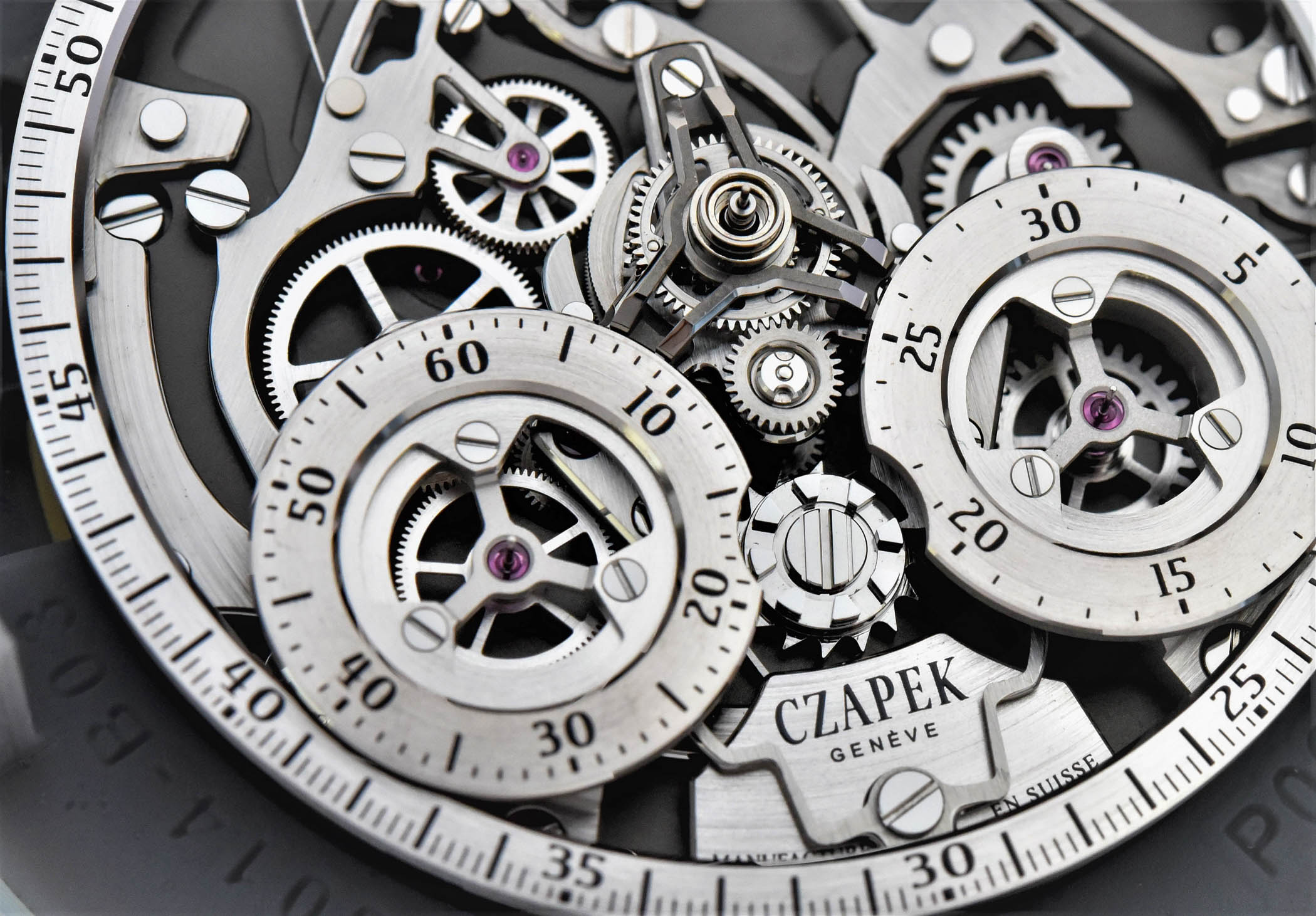 With the Antarctique Rattrappante, Czapek confirms its status as one of the rising independent watchmakers. The new 42.5mm version of the brand’s luxury sports watch features a superb dial-side split-seconds chronograph with the chronograph mechanism on the upper part and the rattrapante on the lower part. The automatic calibre SXH6 is manufactured with Jean-François Mojon of Chronode. As a monopusher chronograph, the pusher integrated at 2 o’clock in the crown guard allows you to operate the start-stop-reset functions. The split-seconds function is actuated using the 10 o’clock pusher. A limited edition of 77 pieces, it was sold out in minutes.
