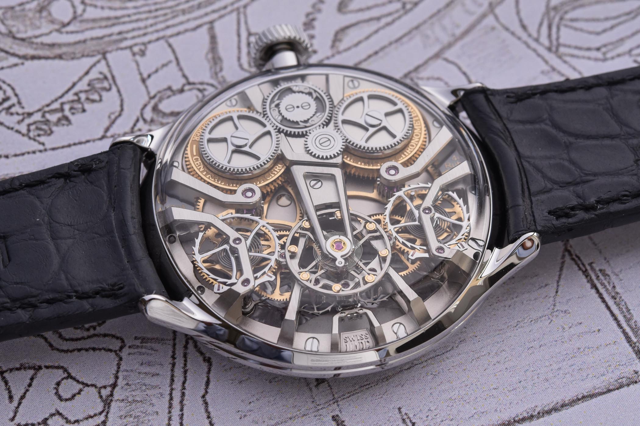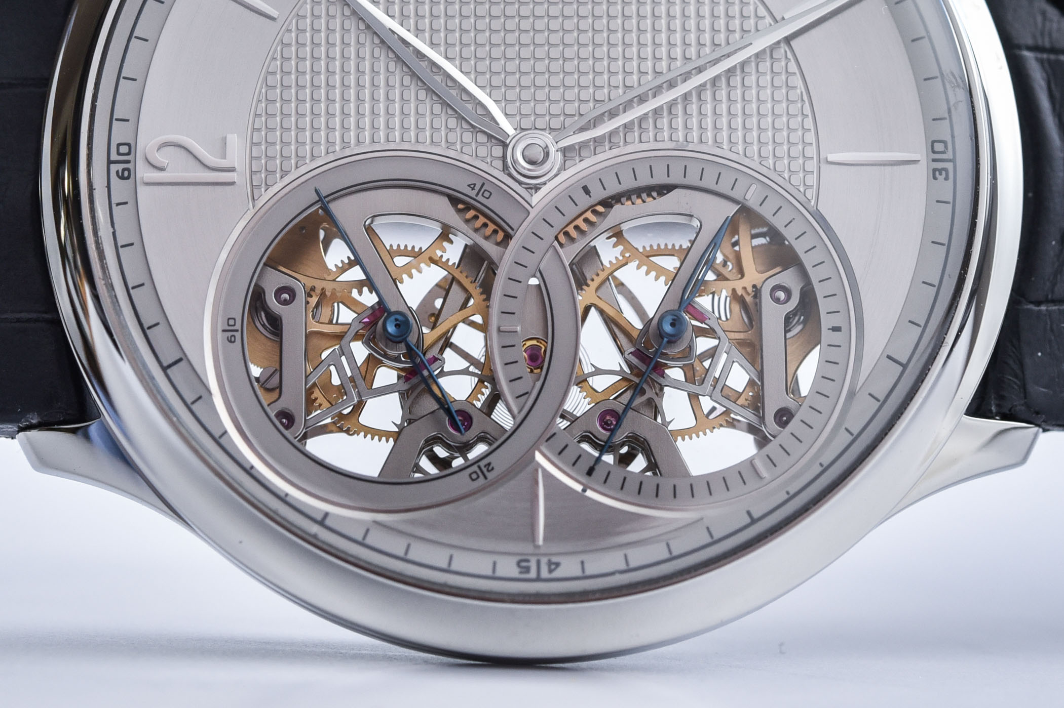 The Central Impulse Chronometer is a double-wheel escapement driven by two independent gear trains, each with its own barrel and constant force remontoir d’égalité. Following the initial introduction as a concept watch last year, this impressive development takes final form. If virtually nothing has changed from a technical perspective, its new dial bringing an elegant new look and an interesting perspective on the movement and its concept. Presented in a 44mm case with two box sapphire crystals, its dial now features two circular openings, two interlaced circles forming the figure eight. These reveal the most critical and spectacular components of the movement, the escape wheels and the remontoirs.