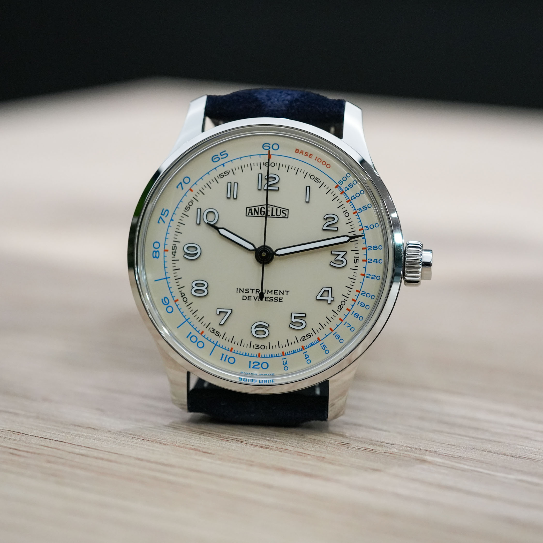 Quick facts: 39mm x 9.27mm stainless steel case – ivory-white or ebony-black dial with central chronograph and tachymeter scale – calibre A5000, produced by La Joux-Perret for Angelus, hand-wound monopusher chronograph with column wheel, 42h power reserve – calfskin strap with pin buckle – limited to 25 pieces per dial colour – CHF 17,100