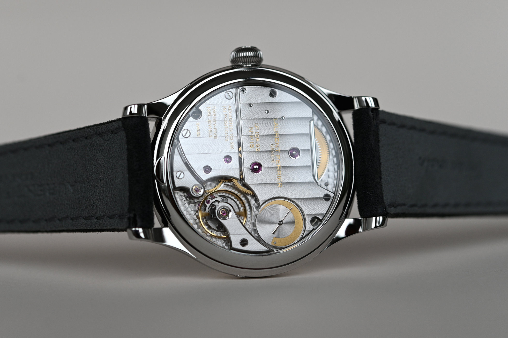 With his latest creation, Laurent Ferrier adds an astronomical and very relevant take to the classic Annual Calendar, one of the most revered models of the brand. This new Classic Moon Annual Calendar is elegant, classic, and restrained but also comes with exquisite details all around. More than just the addition of a complication, the watch has been redesigned compared to previous editions (bevelled date/month windows, elongated Roman numerals) and the double moon indicator is built around several layers: aventurine glass from Murano engraved to create the shape of the moon and stars, Super-LumiNova to make them shine at night, translucent petrol blue enamel to create shades and the phases of the moon. The back retains the same hand-wound proprietary movement with refined decoration. All in all, a very classic and elegant watch.