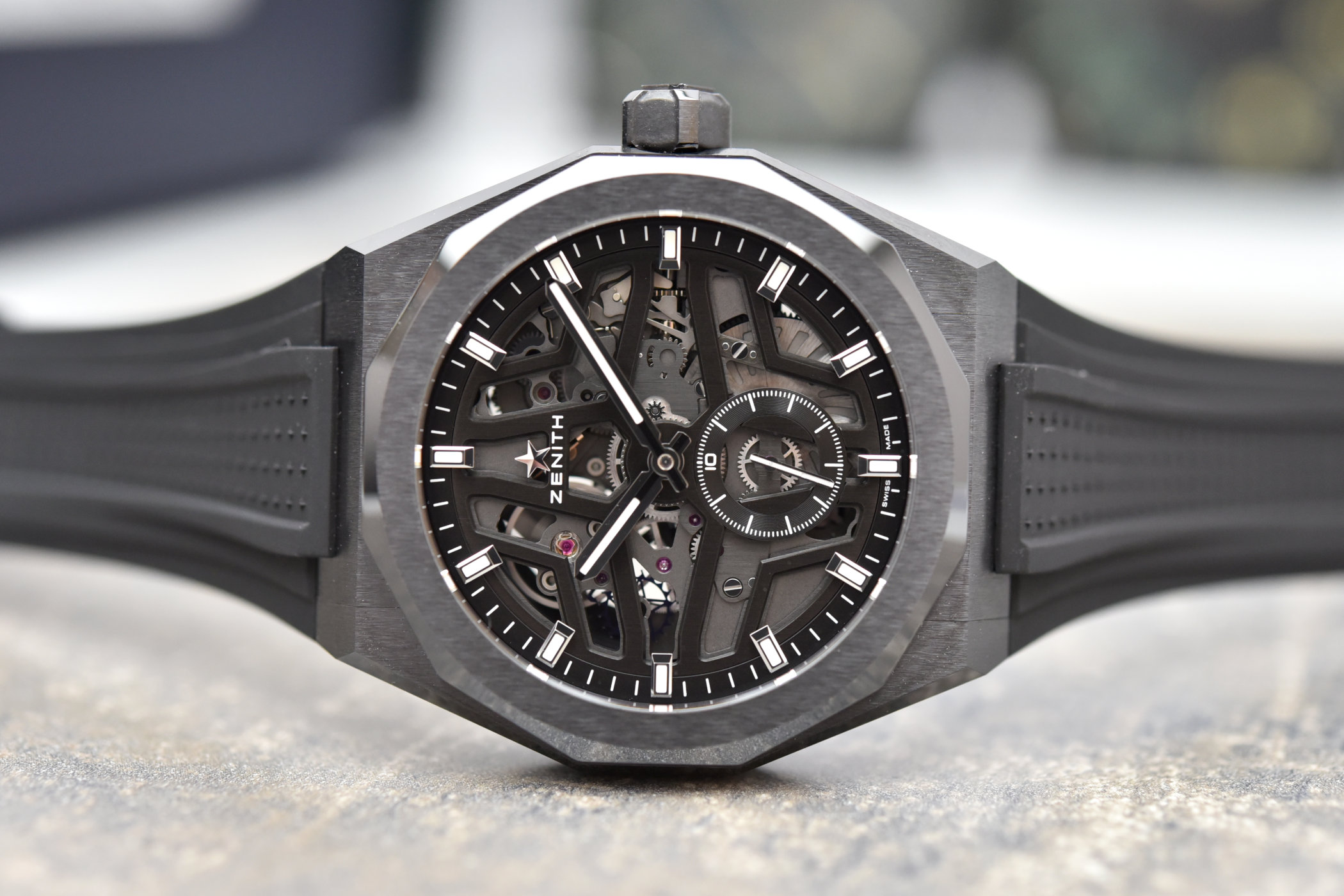 Quick Facts – 41mm x 11.6mm – faceted black ceramic case, satin-brushed & polished – 12-sided ceramic bezel – sapphire crystal front & back – screw-down crown – 100m water-resistant – black openworked plates & bridges – faceted indices and hands with Super-LumiNova – El Primero 3620 SK, in-house – automatic – 36,000vph – 60h power reserve – hours, minutes, 1/10th of a second – black ceramic bracelet and black rubber strap – CHF 16,900