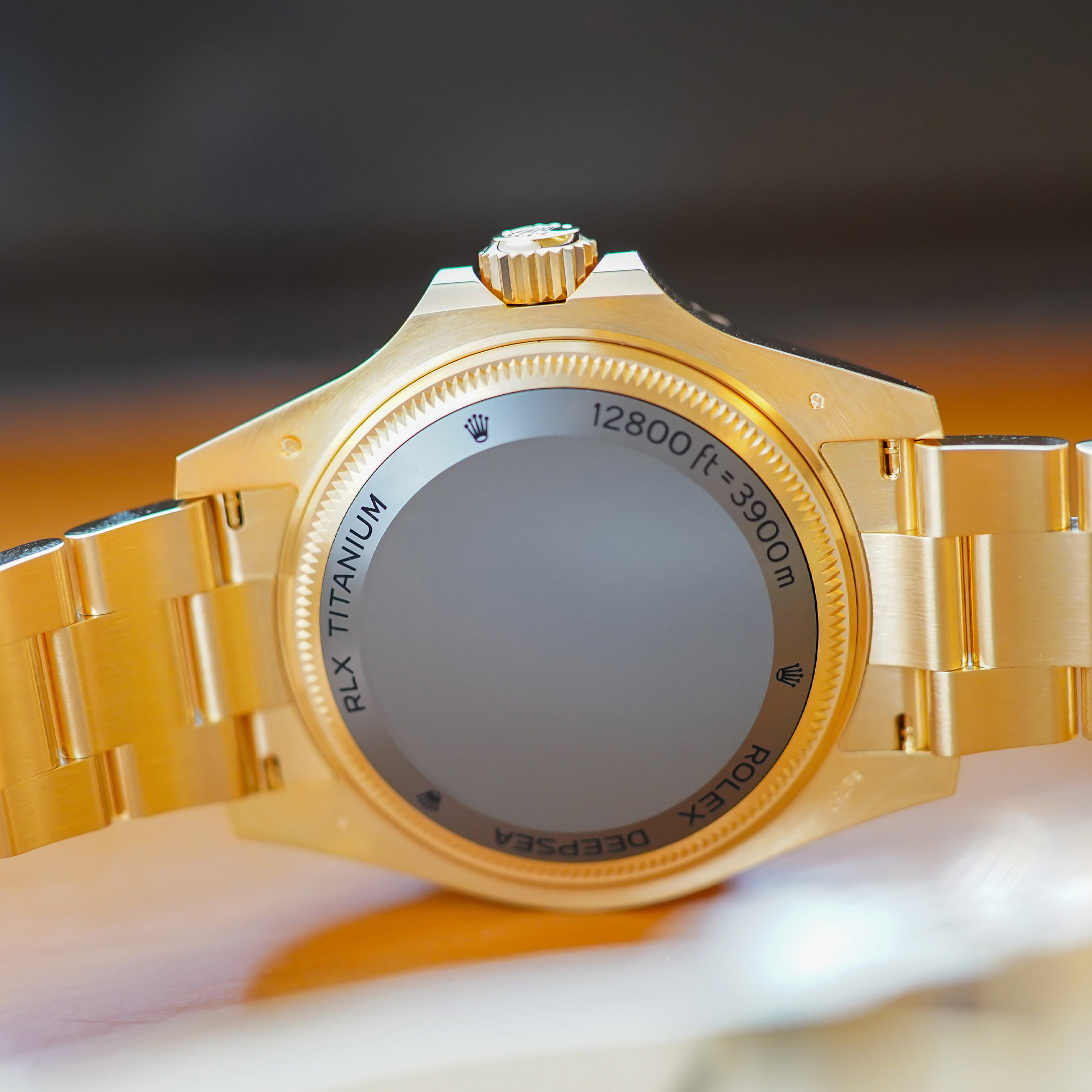 Quick Facts – 44mm x 17.7mm – 18k yellow gold case, brushed & polished – unidirectional rotating bezel with blue ceramic insert – screw-down caseback in RLX Titanium – 5.5mm thick sapphire crystal – 3,900m water-resistant – blue lacquer dial – markers & hands with Chromalight inserts – Calibre 3235, in-house automatic – 28,800vph – 70h power reserve – 18k yellow gold Oyster bracelet with safety clasp and Glidelock extension system – Ref. 136668LB – CHF 49,900