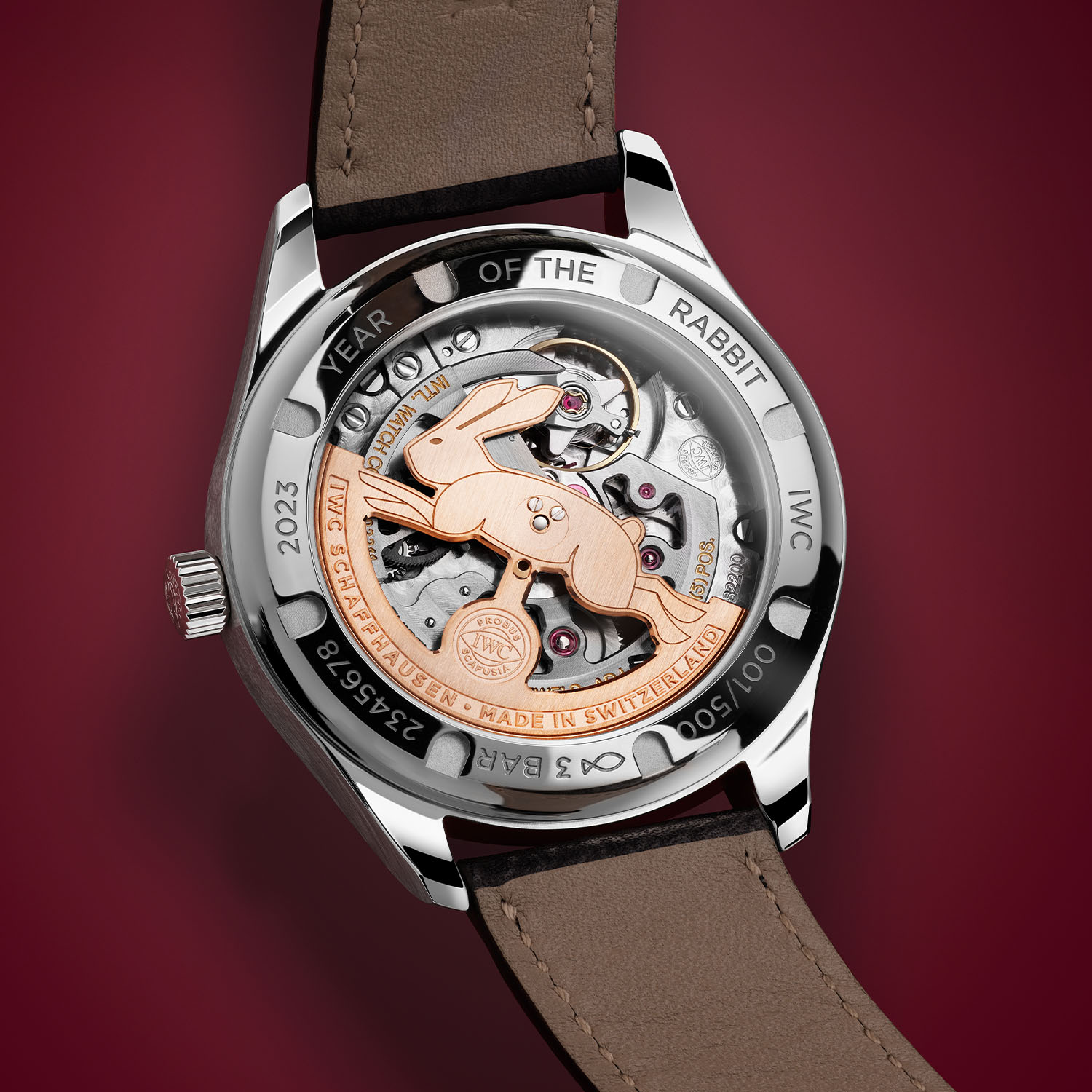 The Portugieser is truly one of the cornerstone collections by IWC Schaffhausen and represents the more refined, classical side of the brand. The collection was expanded two years ago with an automatic model in a 40mm diameter. This is now used to create a special 500-piece edition dedicated to the Chinese Year of the Rabbit. It comes with a burgundy-red dial finished with gold-plated indices and hands. Around the back, a special rotor with a Rabbit can be seen driving the IWC calibre 82200. Worn on a black calfskin leather strap, it retails for EUR 8,650.