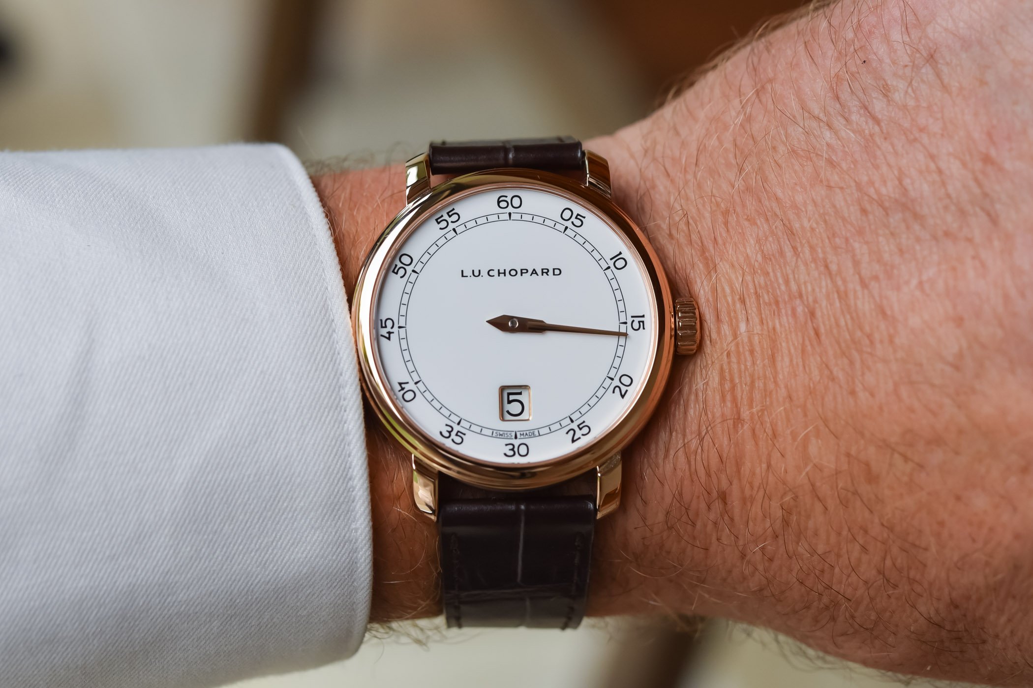 Quick Facts – 40mm x 10.3mm – ethical 18k rose gold case – sapphire crystal front & back – 30m water-resistant – 18k rose gold base dial with white Grand Feu enamel – black Grand Feu enamel minutes track & numerals – central minutes hand with jumping hours window – calibre L.U.C. 98.06 L, micro-rotor automatic – Poinçon de Genève – 240 components – 28,800vph – four barrels for 192h power reserve – alligator leather strap with gold pin buckle – 100 pieces – EUR 53,900