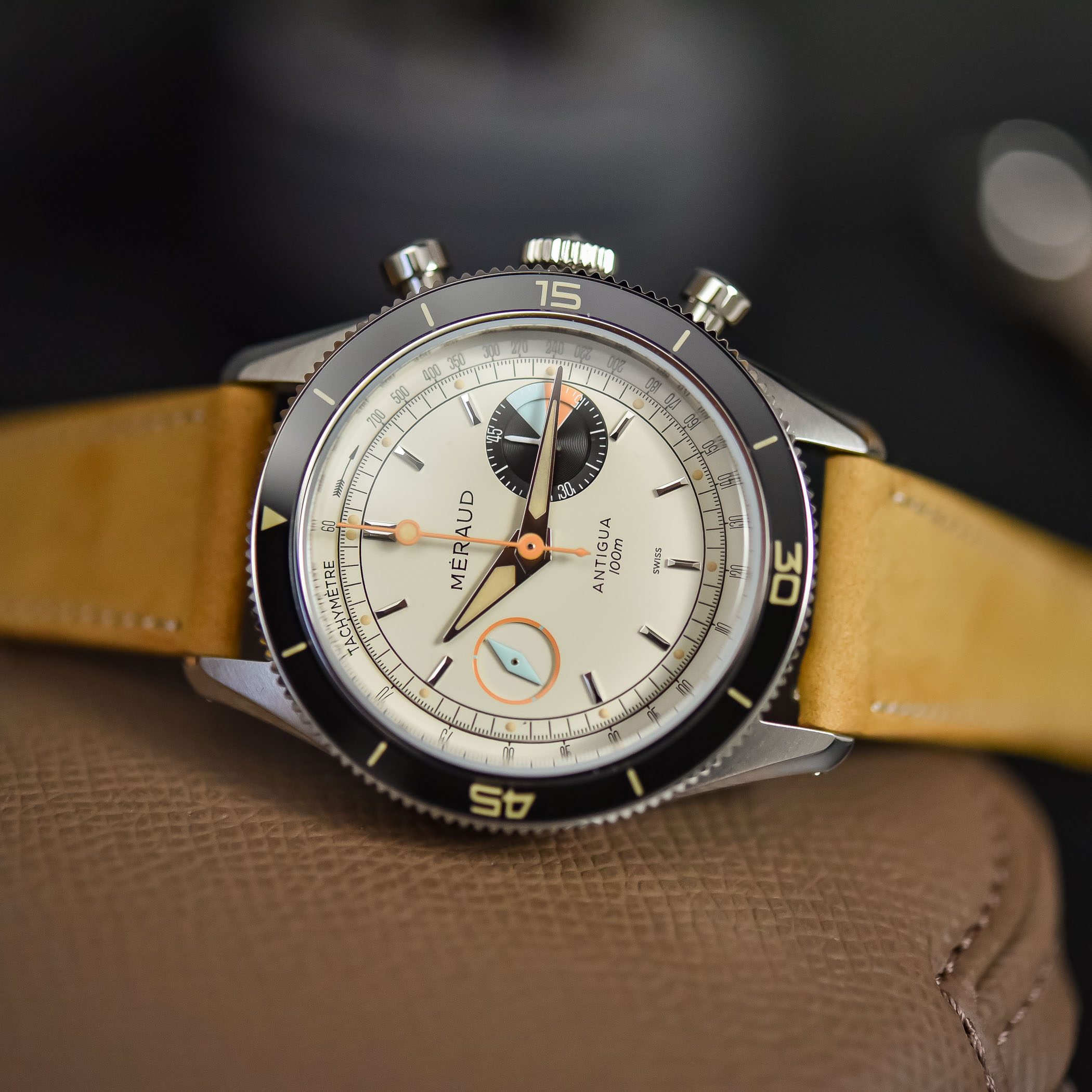 We start things off with one of the coolest vintage-inspired manual chronograph watches we’ve recently come across. The chronograph has always been a fan favourite, and the Antigua, made by Belgian microbrand Méraud, ticks a whole lot of boxes for us. It has a very cool 1970s vibe, is very well built and has just the right amount of colourful touches on the dial. And best of all? It uses a fully serviced New-Old-Stock Landeron 248 mechanical chronograph! It also won’t break your piggy bank, as it is priced at a relatively affordable EUR 1,750. Be quick though, as both dial colours are limited to 100 pieces each.