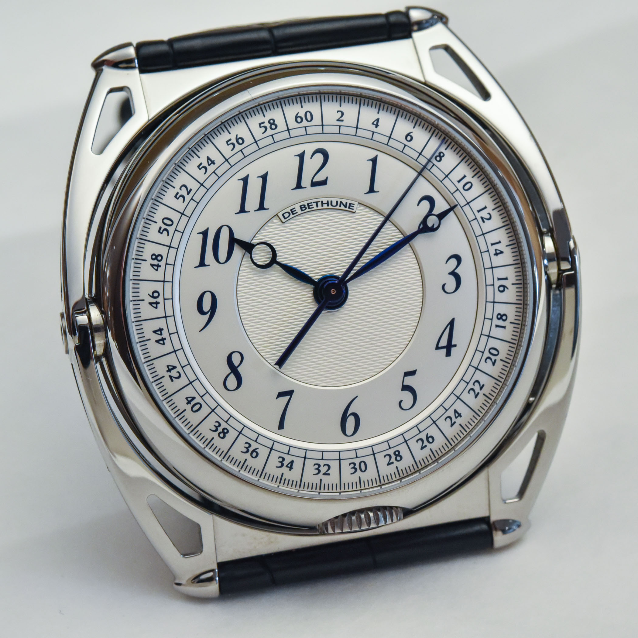 Quick Facts – 42.8mm x 9.5mm – polished grade 5 titanium case – floating lugs with reversible container – sapphire crystal front and back – 30m water-resistant – classical multi-level silver dial with guilloché and blued hands – polished titanium contemporary dial with blued-titanium hour markers and hands – calibre DB2579, in-house – manual winding – exposed tourbillon escapement – 36,000vph – 120h power reserve – alligator leather strap with titanium pin buckle – CHF 215,000 (before taxes)