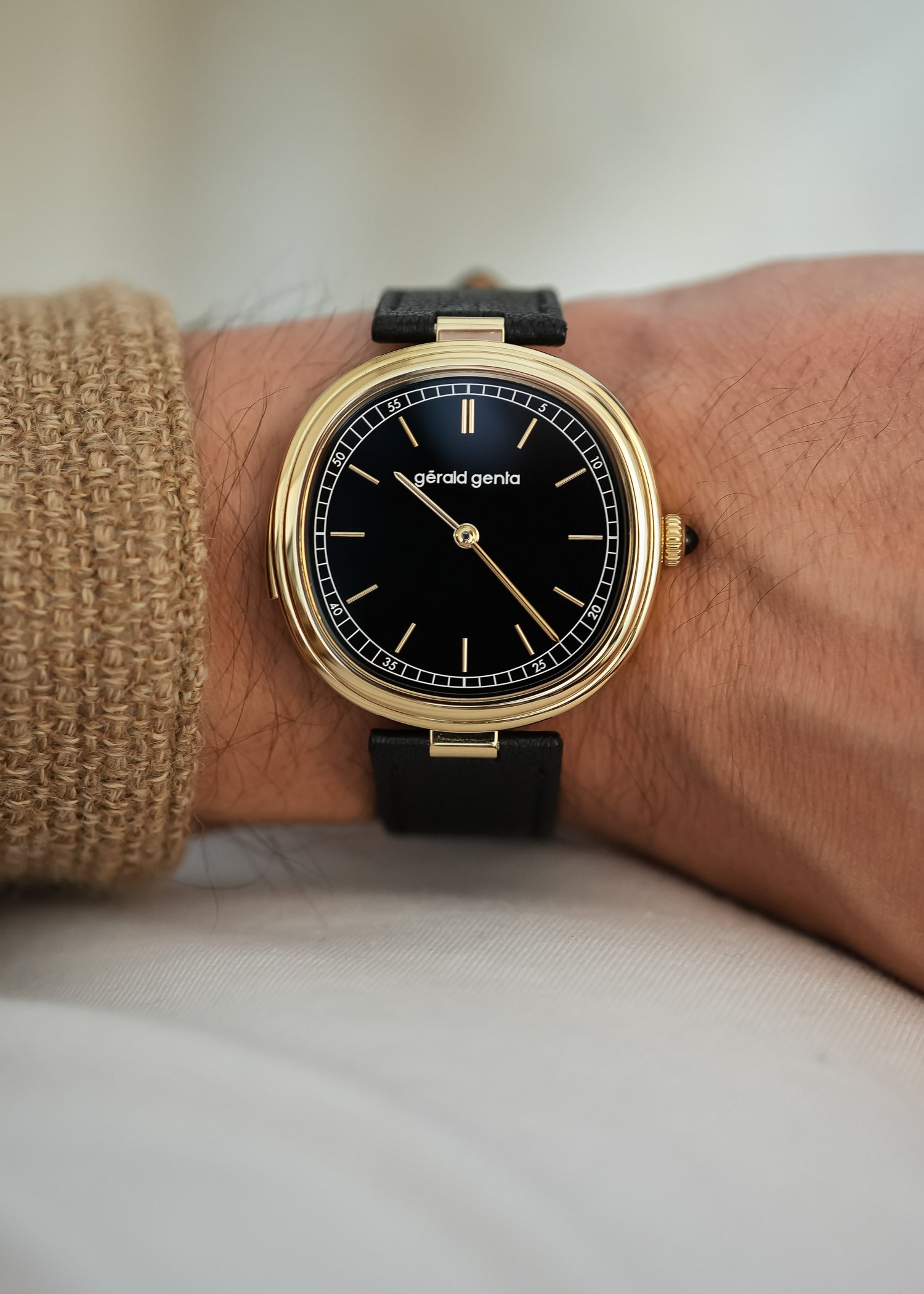 Quick Facts – 40mm x 9.6mm – yellow gold case, polished – sapphire crystal front & back – polished black onyx dial – yellow gold hands & markers – white minute track – calibre GG-002, in-house – manual winding – 21,600vph – 80h power reserve – minute repeater function – black sheep leather strap with yellow gold pin buckle – 10 pieces produced per year – CHF 320,000 (excl. VAT)