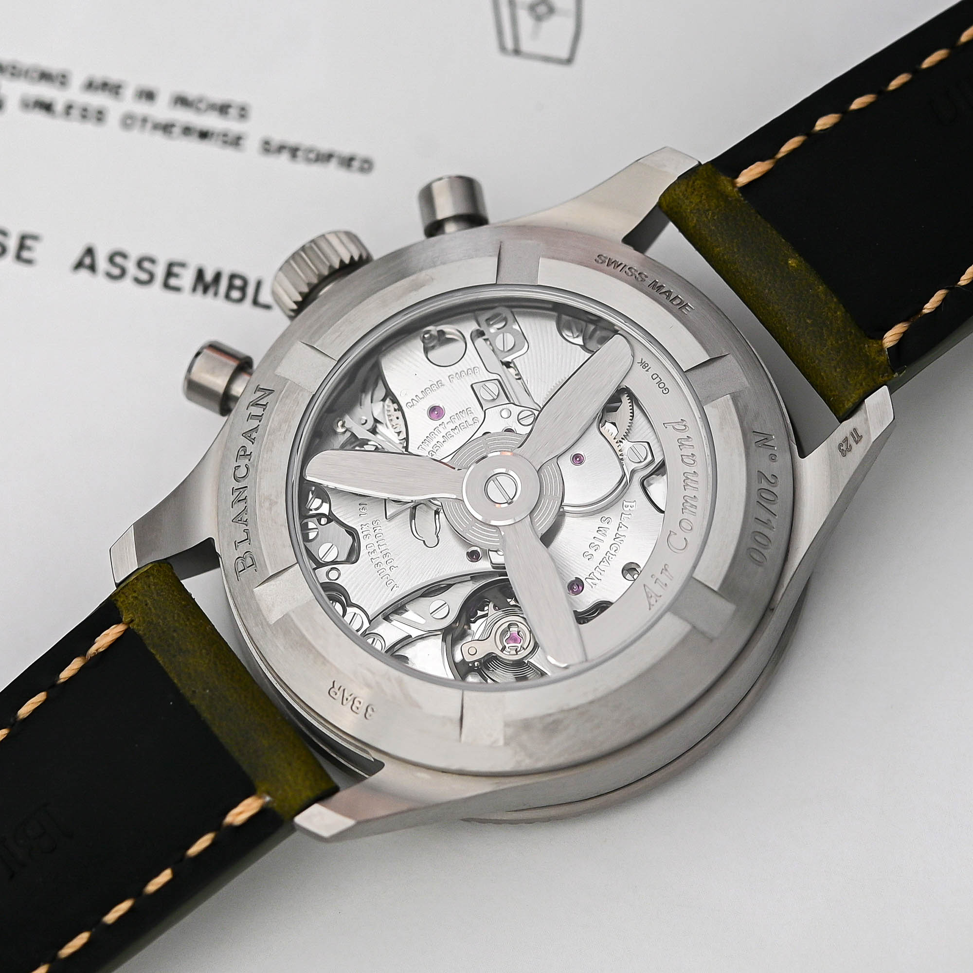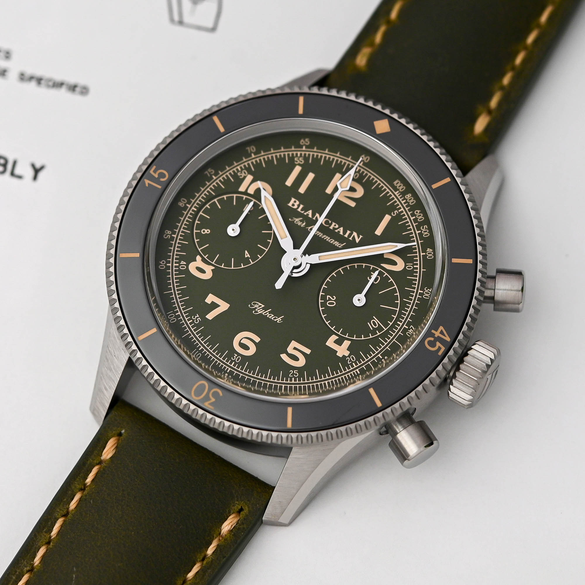 While previously we included the 42mm model and its 5Hz frequency, we turn to the more compact 36mm edition of the Blancpain Air Command instead. Being smaller in size does not mean it’s any less attractive to look at. Quite the opposite, as the 36.2mm wide grade 23 titanium case is also slimmer at 11.50mm versus 13.70mm for its bigger brother. So, in essence, that makes it far easier on the wrist! The specific tone of green isn’t too intrusive, giving the Air Command an undeniable degree of charm. The 100-piece limited edition retails for CHF 18,900, while its 42mm 200-piece counterpart retails for CHF 20,100.