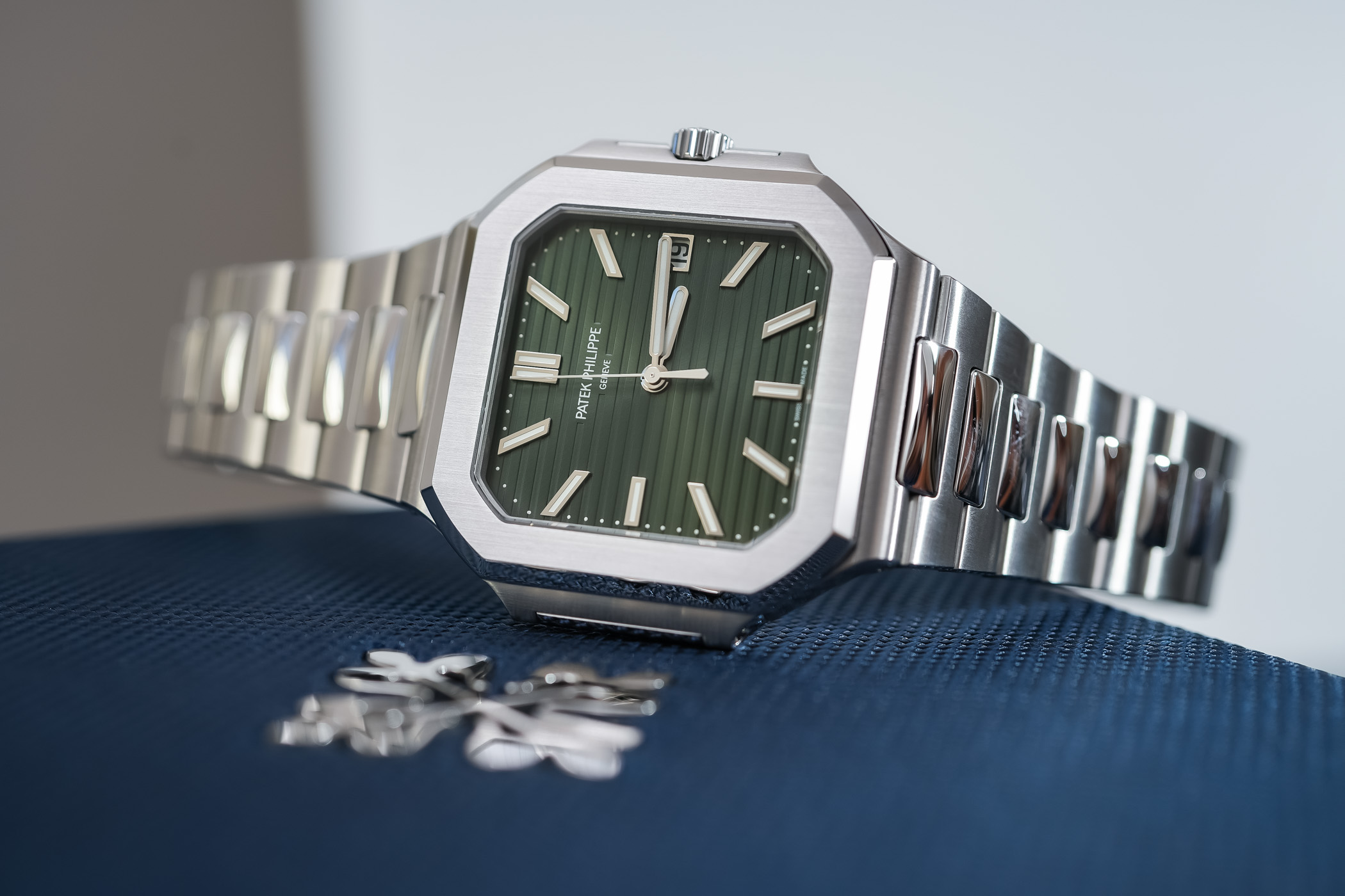 Sure, you can call it lazy on Patek Philippe’s end to ‘squarify’ the Nautilus, call it Cubitis, and leave it there, but there’s more to the collection than that. It’s actually much more pleasing than most want you to believe it is. It combines reassuring elements with new traits, resulting in a watch that looks both familiar and new at the same time. The 44.5mm wide steel case (from 3 to 9 o’clock, including the crown) is rather slim, at 8.3mm in height. Its green dial shows the signature horizontal grooves and it’s powered by the calibre 26-330 S.C. Obviously, it comes on an integrated steel bracelet, which now has a built-in micro-adjustability system. The price is CHF 40,900.
