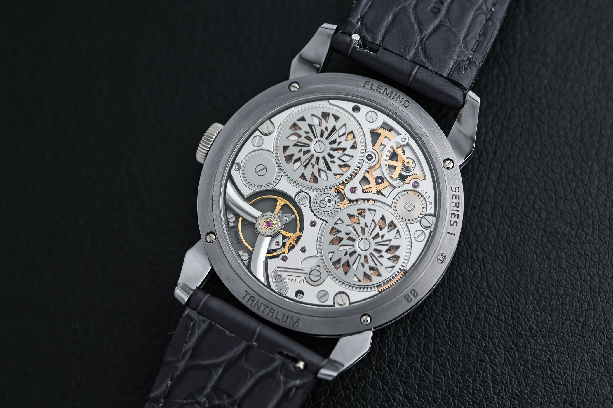 Quick Facts -38.5mm x 9mm – platinum, pink gold or tantalum case, brushed & polished – sapphire crystal front & back – handmade multi-piece dial with frosting, guilloché, hammering or aventurine – applied numerals and hands, polished – small seconds subdial – calibre FM-01, manufactured with Jean-François Mohon (Chronode) – 21,600vph – 168h power reserve – movement-side power reserve display – alligator leather strap – 25 pieces in tantalum, 7 pieces in gold or platinum – CHF 45,500 (tantalum) – CHF 48,500 (pink gold) – CHF 51,500 (platinum)