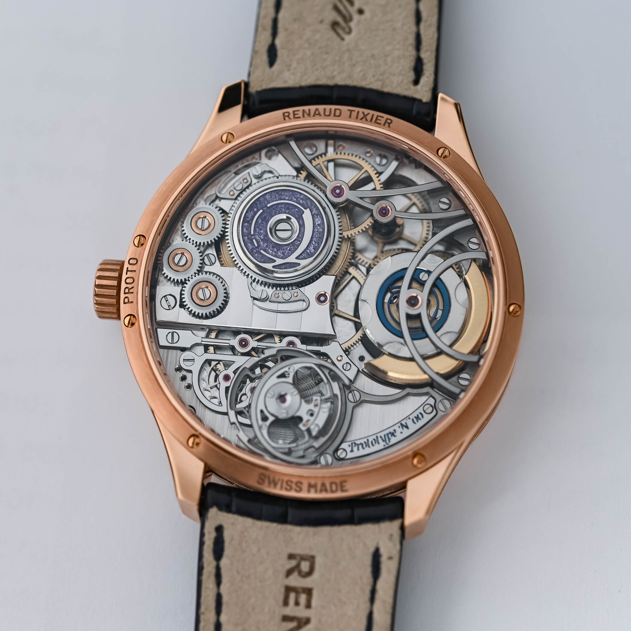 The Monday watch is the result of two generations of watchmakers teaming up: Dominique Renaud (of Renaud & Papi fame) and Julien Tixier. The duo has joined forces to form Renaud Tixier, and the first watch is quite something! Reengineering the concept of the micro-rotor to fit a spring-loaded mechanism to kickstart it when empty is just part of it. This is designed to combat the lower winding efficiency of micro-rotors. Fitted into a highly impressive movement visible from the back and partially from the front, the Monday comes in rose or white gold cases with grey dials. Worn on a calfskin or alligator leather strap, the first client-ready watches are expected to be delivered towards the end of the year. The price for the Renaud Tixier Monday is set at CHF 79,000 (excl. VAT).