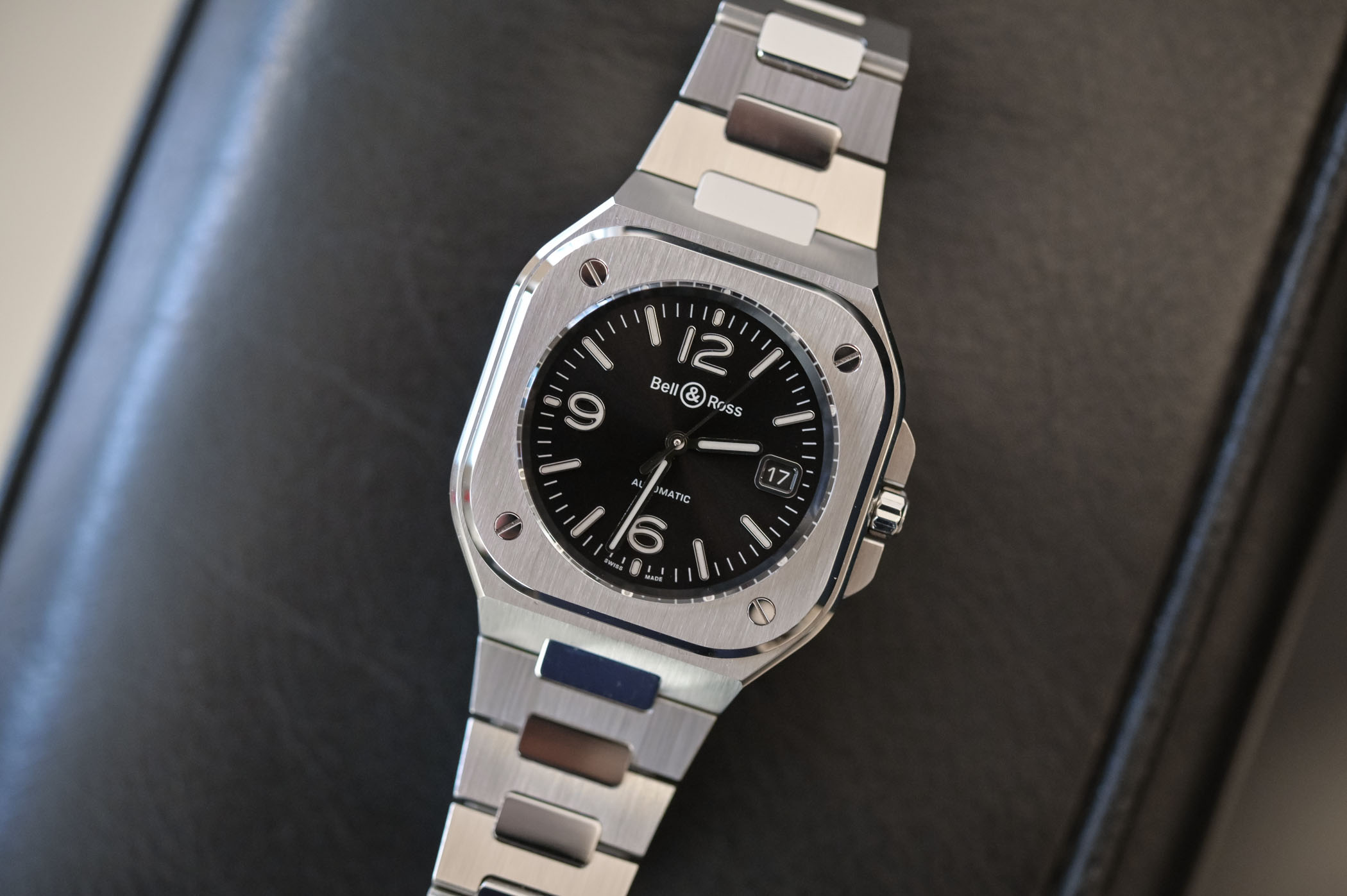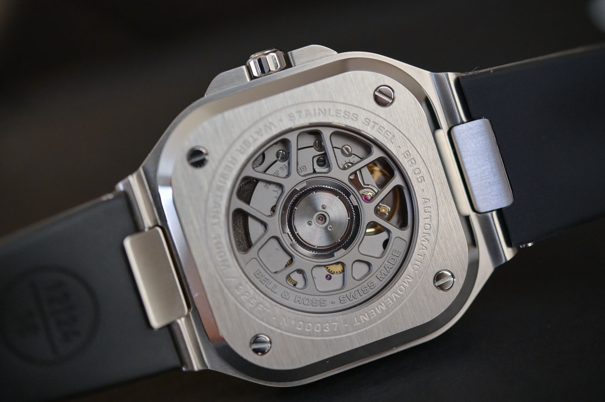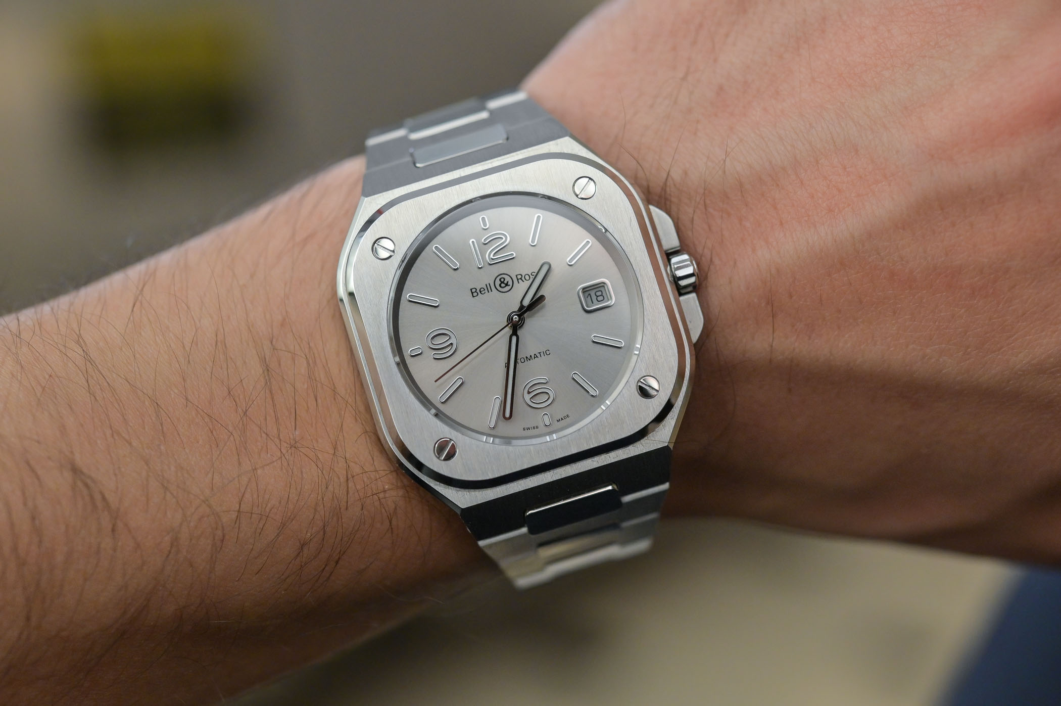 With the BR05, Bell & Ross is launching a full collection comprising no fewer than 10 references. The 40mm rounded square case retains the distinctive brand’s identity – meaning that you’ll still find the signature “round within a square” shape, which has made the brand successful for over 10 years now. The compact construction includes a bezel with 4 screws, slopped ergonomic lugs and a crown guard. The steel bracelet is flat, thin and tapered. Visible via the exhibition caseback, the automatic movement features an openworked full rotor. Overall, it is a cool alternative with its own style and a price tag that remains in B&R territories.