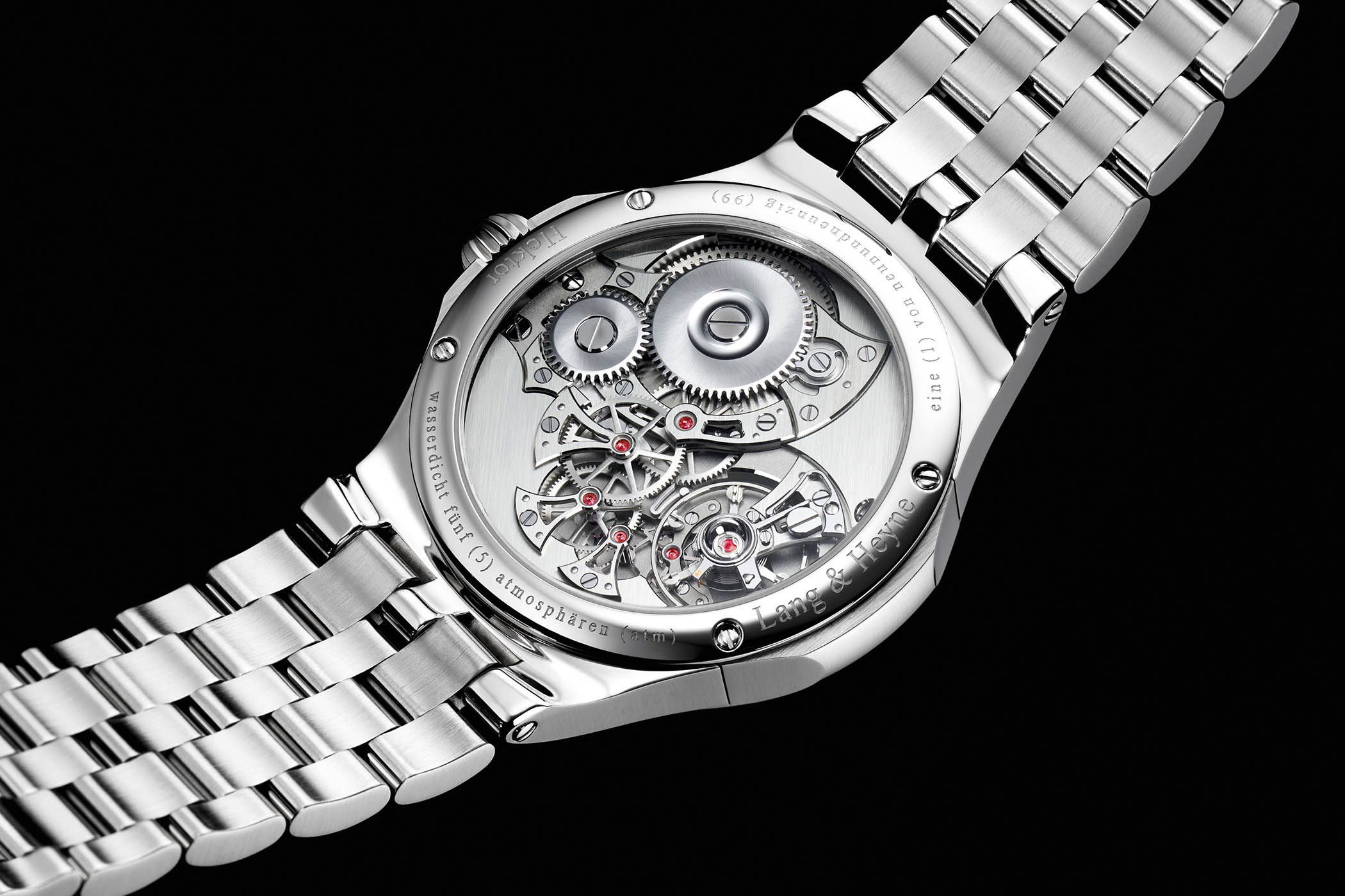 Quick Facts – 40mm diameter x 10.95mm height – stainless steel case, brushed and polished, sapphire crystal front and back – blue, green or grey textured dials – aperture revealing the movement underneath – Calibre UWD 33.2 – hand-wound – shock-proof eccentric balance with flat hairspring – 48h power reserve – 5-link polished and brushed bracelet – Limited Edition of 33 pieces per colour – EUR 16,900