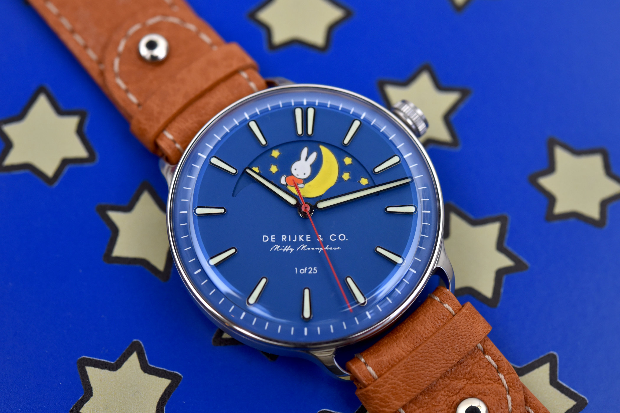 We move things from the ultra-complex to an unequivocally fun and much more affordable watch, with the De Rijke & Co Miffy Moonphase. Even though this inaugural variation sold out quite quickly, we can confirm more colour variations are in the works by Laurens de Rijke, the founder of the one-man brand De Rijke & Co. The Miffy Moonphase uses the Amalfi Series platform with a rotatable inner case, but now with a very fun moon phase display. The disc underneath the dial shows Miffy stradling the moon, just like in the children’s books. Power comes from a Sellita SW288-1 with 38 hours of power reserve. It’s worn on a handmade leather strap that passes through the fixed lugs and closes with a stud. Limited to 25 pieces and retailing for EUR 3,300, this version is sadly no longer available.