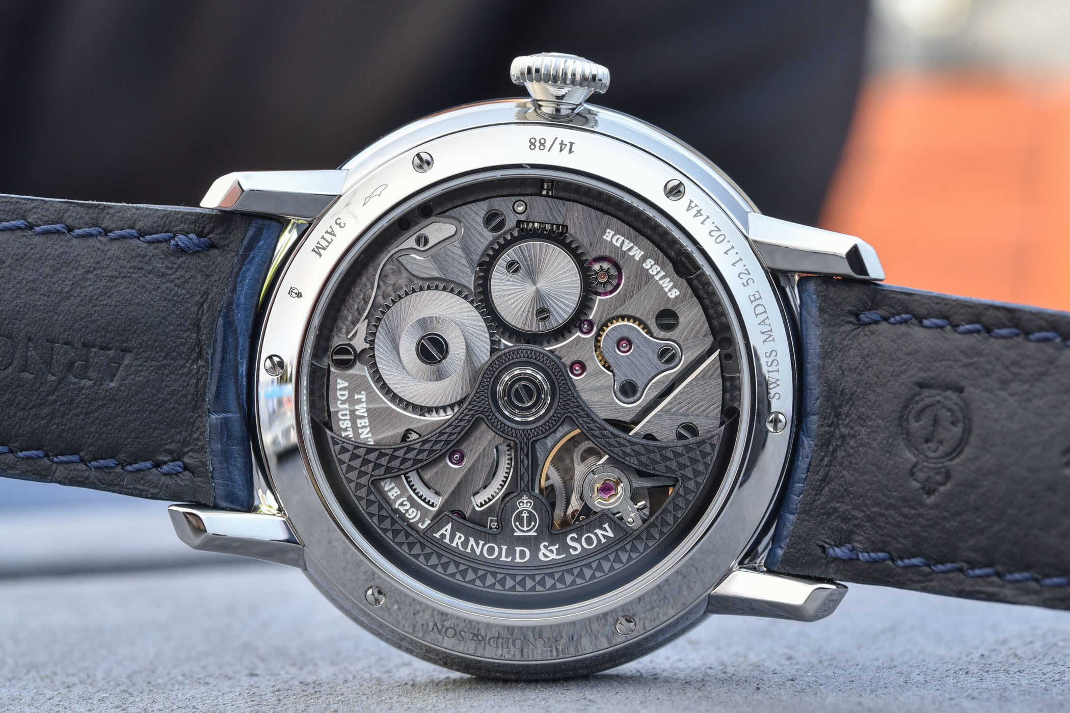 The fascinating Arnold & Son Globetrotter has been around for a while, and last year the brand introduced a stainless steel version. It uses the same display as it always has, with a detailed depiction of the northern hemisphere on its domed central section. The arched bridge holds a ruby to mark the north pole, as two pointers stick out from underneath the domed disc, one for the hours and one for the minutes. Home time is adjusted through the third position of the crown, which allows you to align your location against the 24-hour disc. Local time is then set by adjusting the hands in the second position of the crown. Around the back, you get a full view of the ornately decorated A&S6022 calibre inside. It retails for CHF 17,900 with opaline dial, or CHF 18,900 with blue dial.