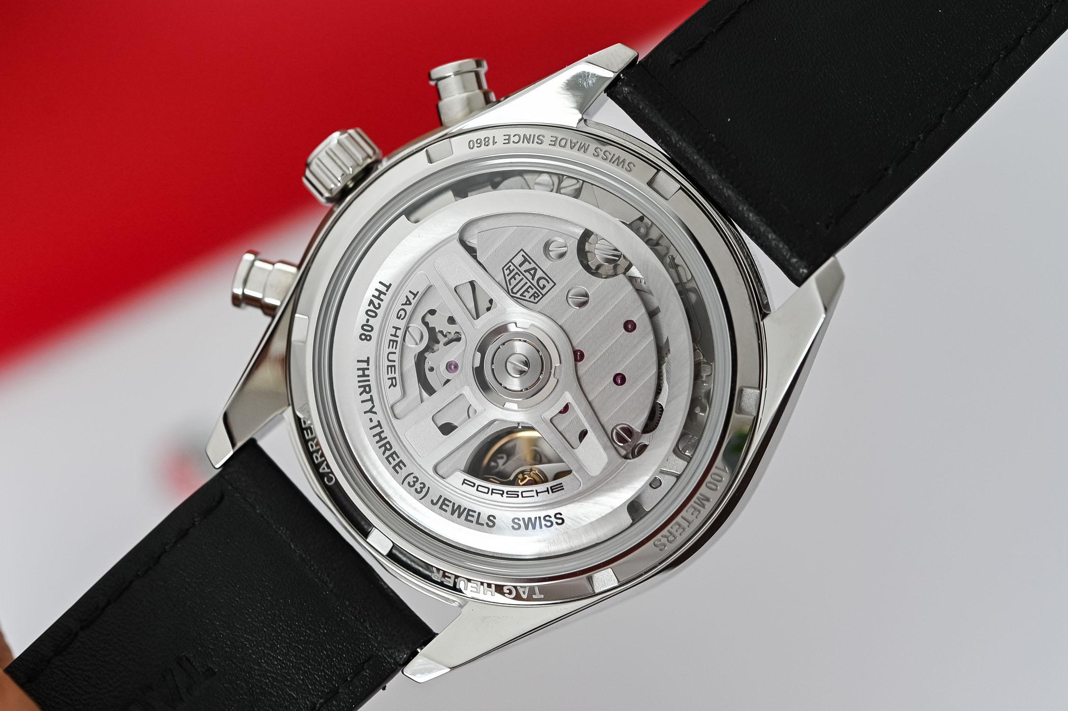 Quick Facts – 42mm x 14.9mm – stainless steel or rose gold case, brushed & polished – glassbox domed sapphire crystal – sapphire crystal caseback – 100m water-resistant – silver or beige dial (depending on case material) with applied indices and hands with Super-LumiNova – red chronograph elements – calibre Th20-08, in-house – automatic integrated chronograph – 28,800vph – 80h power reserve – hours, minutes, small seconds, chronograph, date – perforated leather strap – CHF 9,000 in steel, CHF 22,000 in gold
