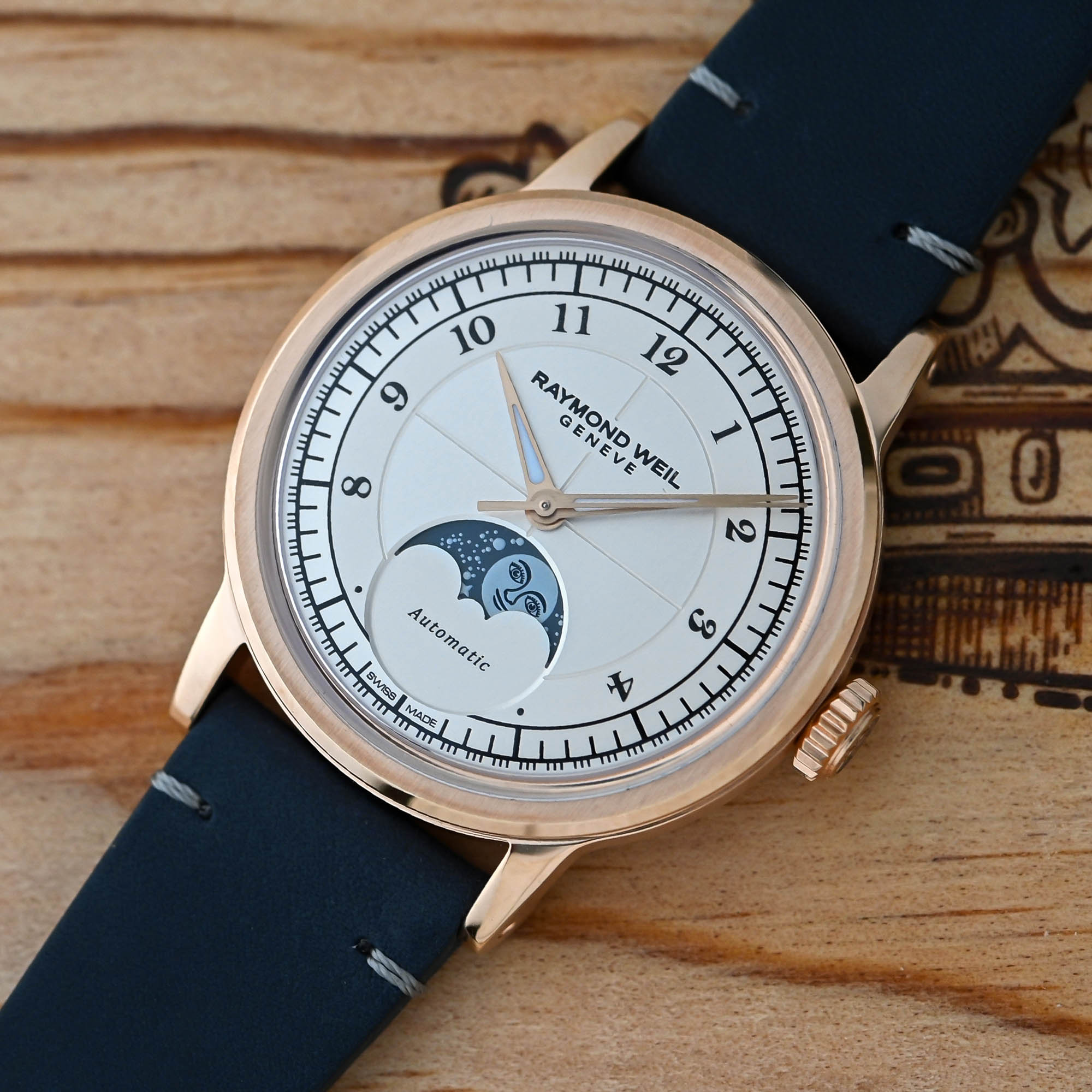 First up is one of the most refreshing watch collections we’ve seen in a long time, the Raymond Weil Millesime. Applauded for its ravishingly good looks and sensible watchmaking, one of the more beguiling models is the Millesime 35 Moonphase in rose gold PVD. This adds a romantic moon phase indication to the central hour, minute and seconds hands. Now, this doesn’t add an extreme level of complexity, but it does bring extra charm to the dial. And all this costs a rather sensible CHF 2,225, for which you get a reliable Swiss-made Sellita SW280.