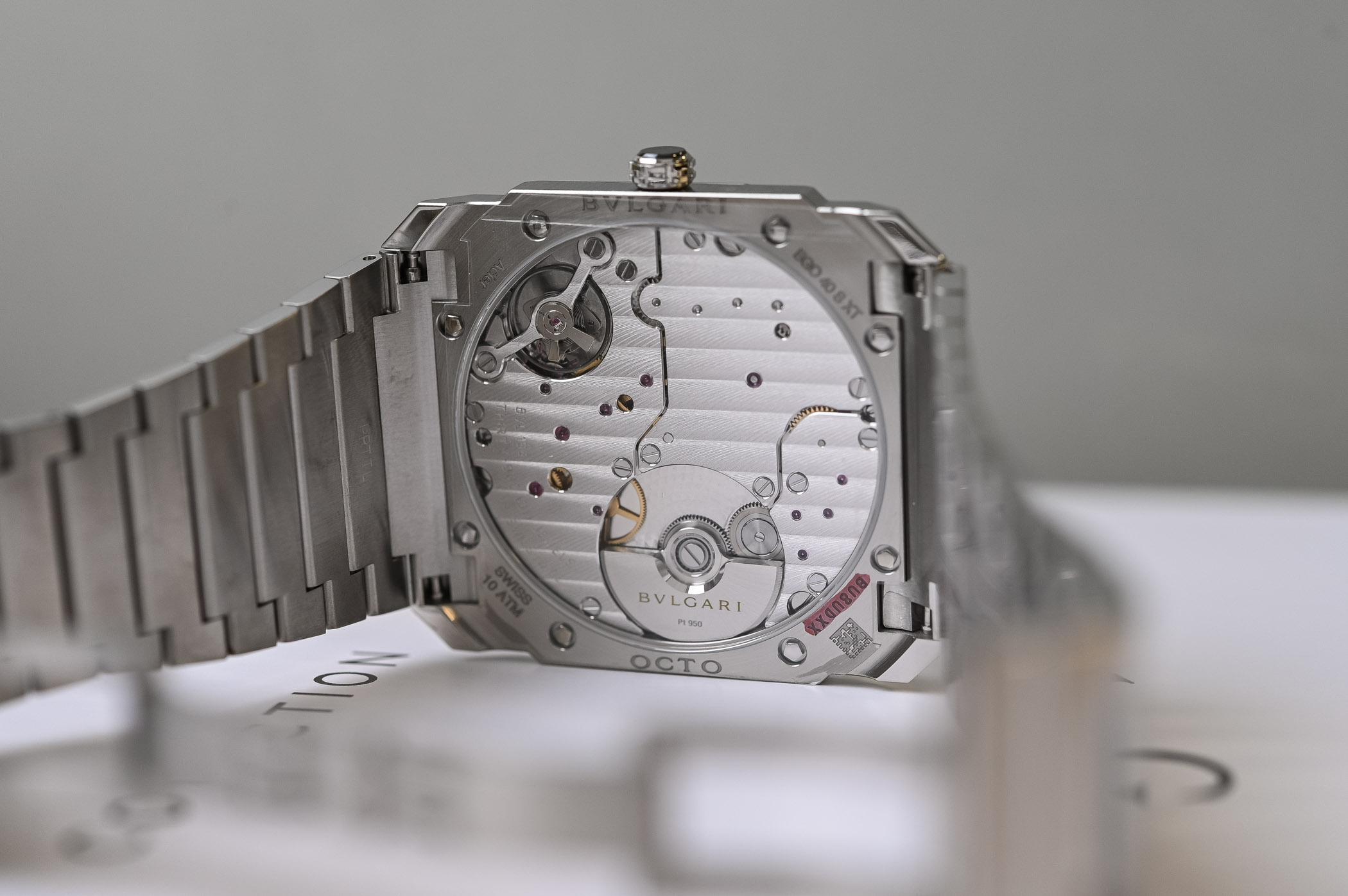 Quick Facts – 40mm x 6.4mm – 904L stainless steel case, brushed & polished – sapphire crystal front & back – screw-down crown – 100m water-resistant – Tuscan Copper dial, sunray brushed – rhodium-plated markers & hands – calibre BVL 138, in-house – ultra-thin micro-rotor automatic – integrated stainless steel bracelet, brushed & polished – part of the permanent collection – EUR 15,000