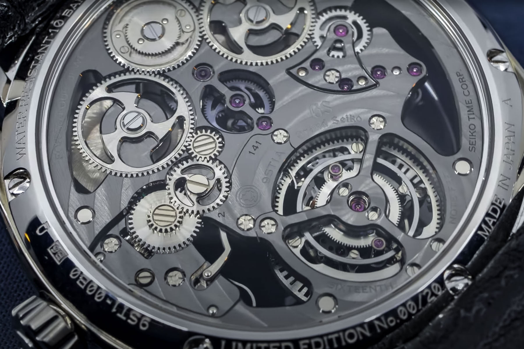 Quick Facts – 43.8mm x 12.9mm – platinum 950 and Brilliant Hard Titanium case – brushed and Zaratsu-polished – box-shaped sapphire crystal with see-through caseback – 100m water-resistant – openworked dial – sub-dial for hours and minutes – integrated constant-force mechanism and tourbillon at 6 o’clock – power reserve indicator at 8 o’clock – Grand Seiko calibre 9SR1 – manual wound constant-force tourbillon – 340 components – 28,800vph – 72h power reserve – limited edition of 20 pieces – EUR 370,000