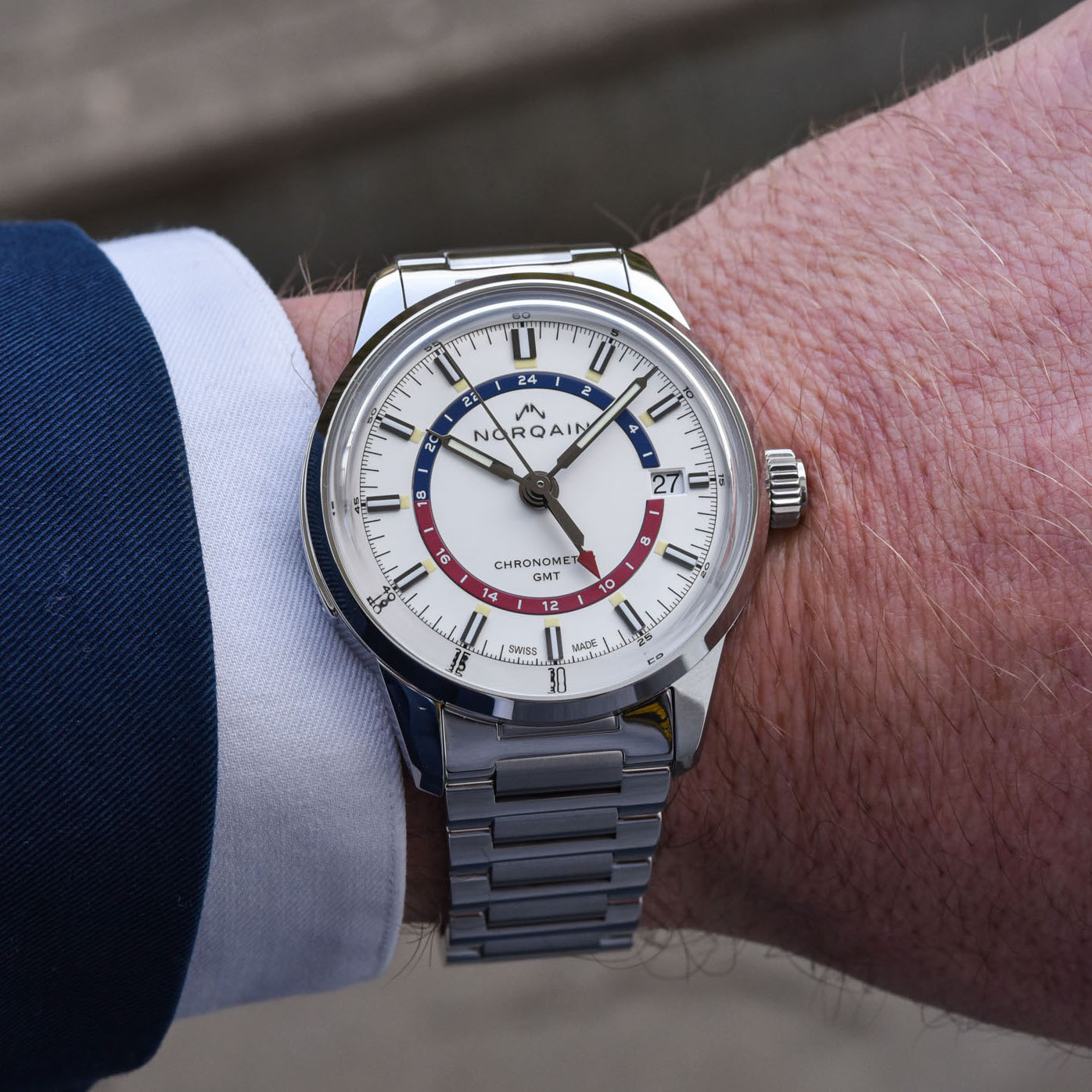 Even though a young brand, Norqain has managed to make a name for itself on the watchmaking scene with its well-priced, well-built, well-designed watches often powered by top-tier manufacture movements. Case in point, the brand vision of a traveller’s watch, the Freedom 60 GMT, which is now available in a classic steel case with a handsome white dial and, because this is somehow iconic of the GMT watches, a so-called “Pepsi” 24h ring, but this time displayed on the dial. The watch has a slight vintage vibe, it is well-proportioned and robust. Inside is a Kenissi-made automatic chronometer movement, with 70h power reserve and independent local-time hand – the most practical when crossing time zones. Overall, a great package with cool looks. More details in our hands-on article here.