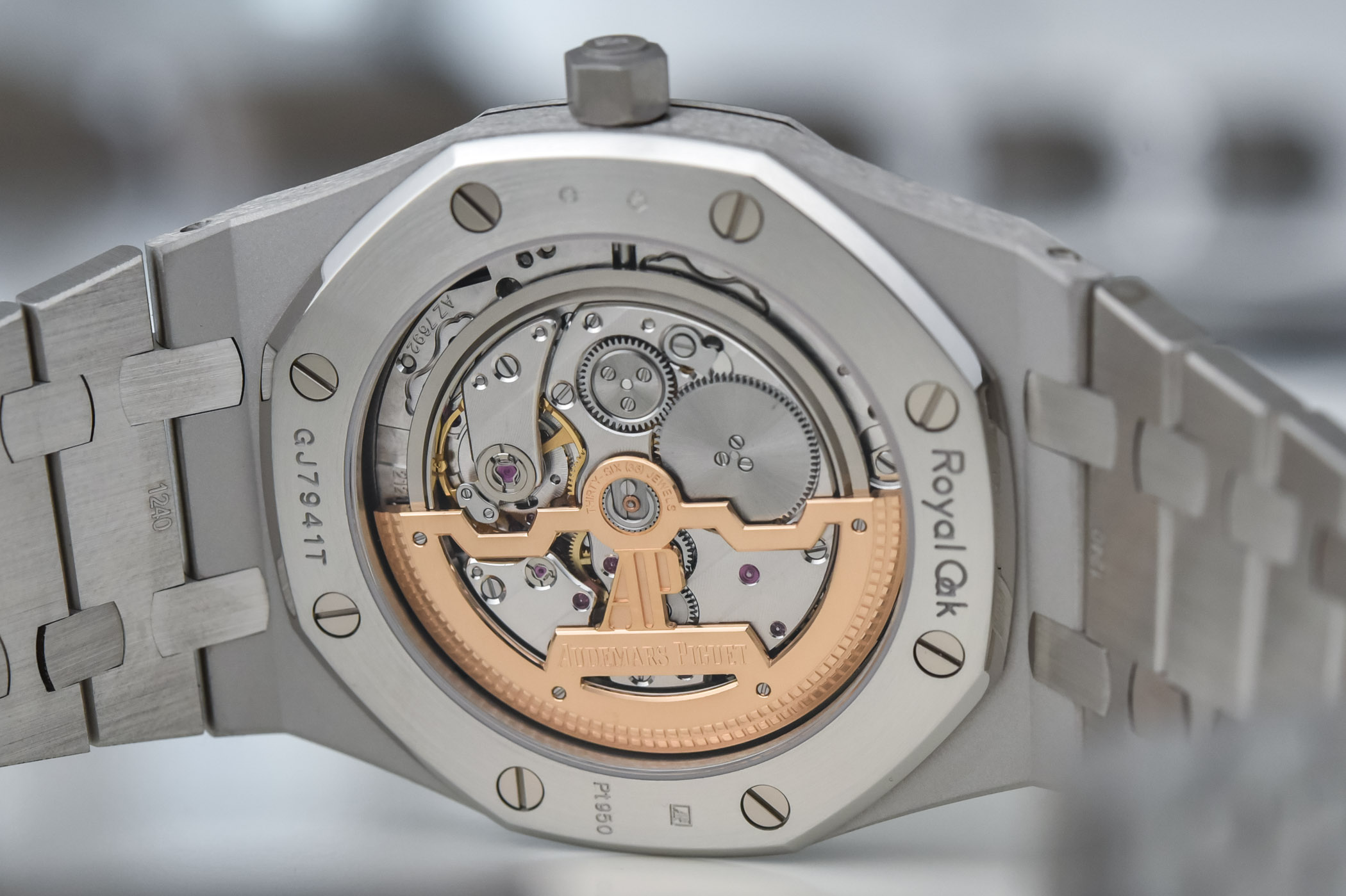 Quick facts: 39mm x 8.1mm – 950 platinum case – Smoked green dial with sunray-brushed pattern – Calibre 2121, in-house – extra-thin automatic – platinum Royal Oak integrated bracelet – 15202PT.OO.1240PT.01 – 100 pieces produced in 2021 – CHF 90,150 (excl. taxes)