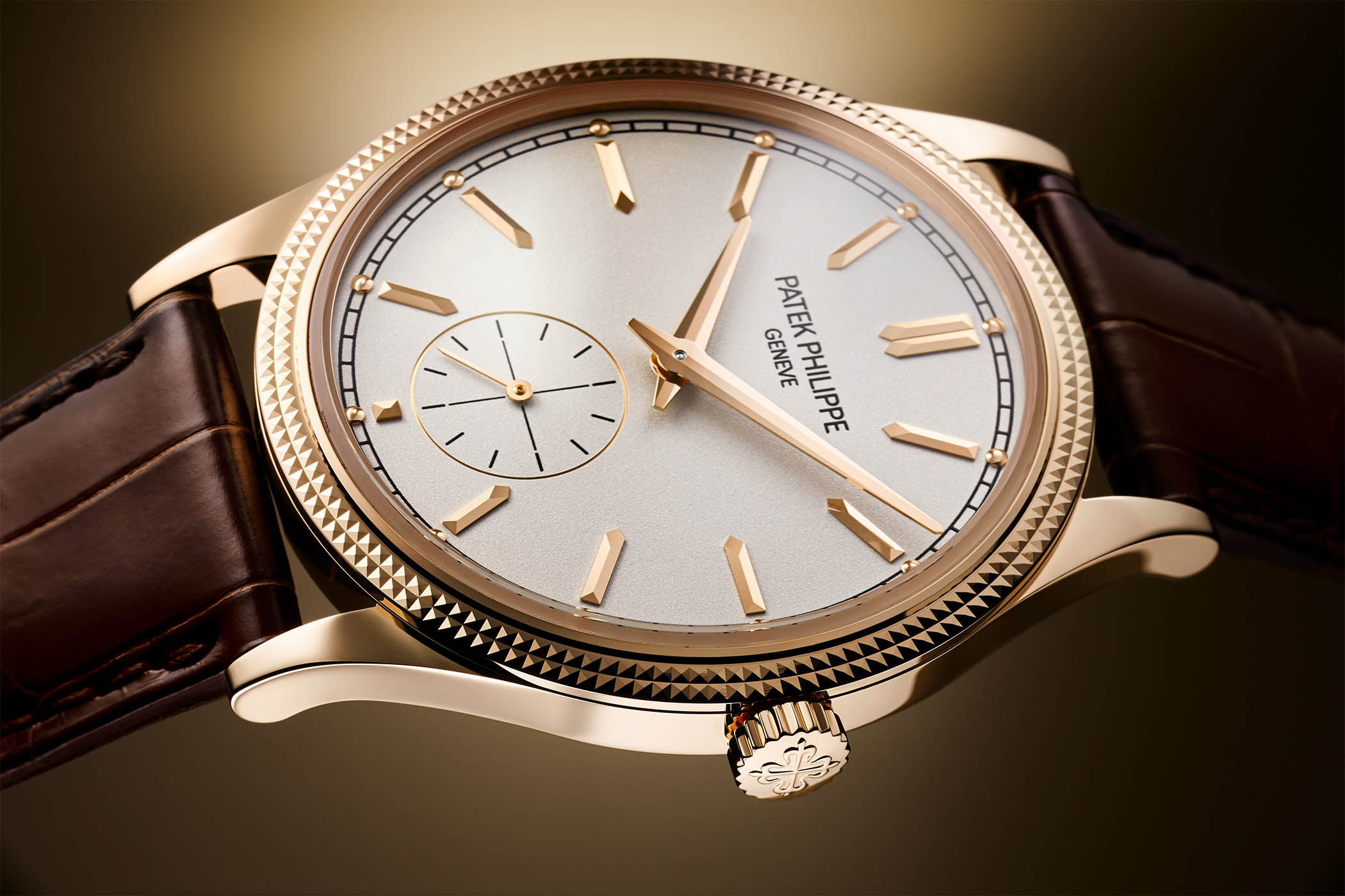 Quick facts: 39mm x 8.1mm – 18k rose or white gold Calatrava case with Clou de Paris pattern on the bezel – silvery grained or Charcoal grey dial – Calibre 30?255 PS, hand-wound, 65-hour power reserve, hours, minutes, small seconds – Alligator leather strap – ref. 6119R-001 and 6119G-001 – EUR 25,800