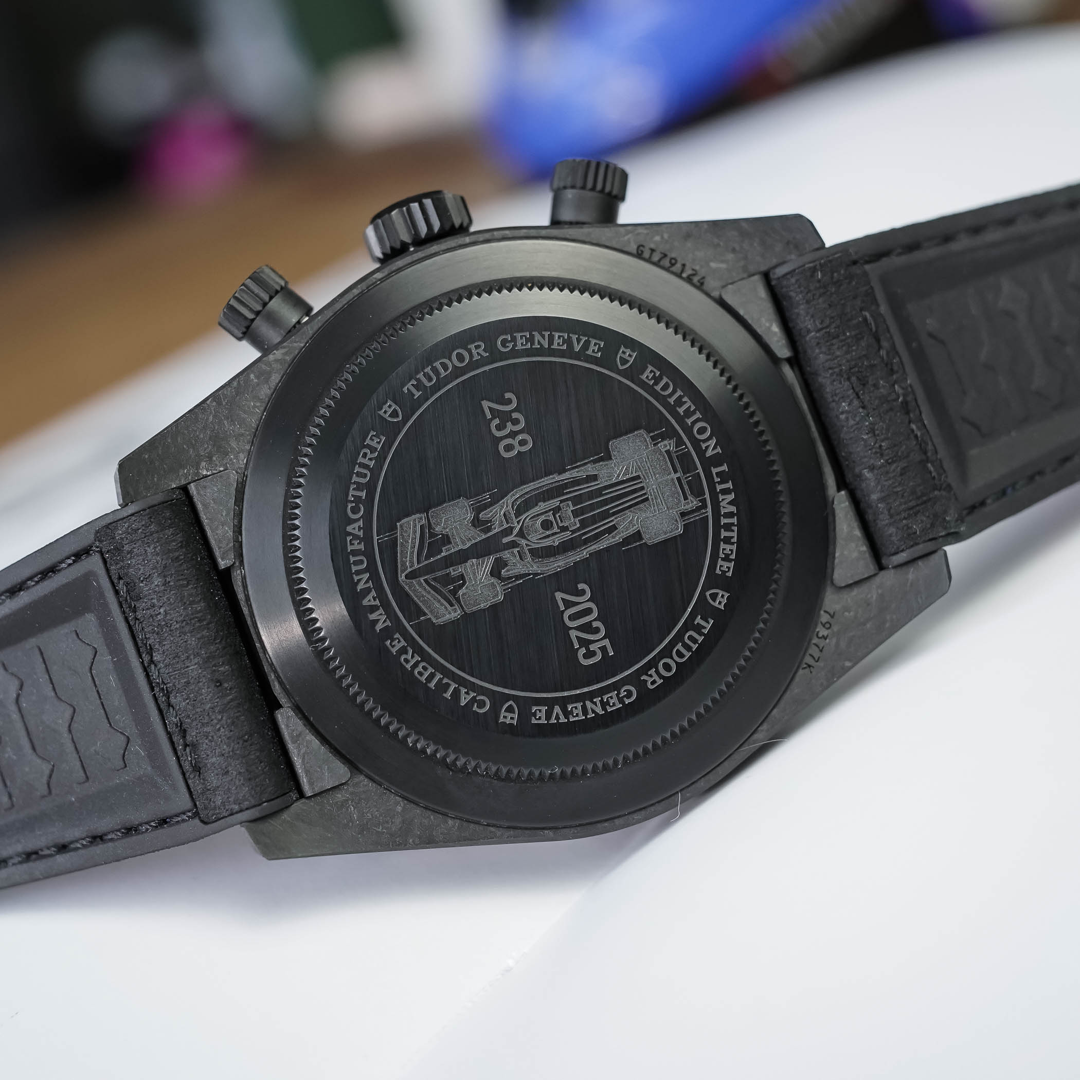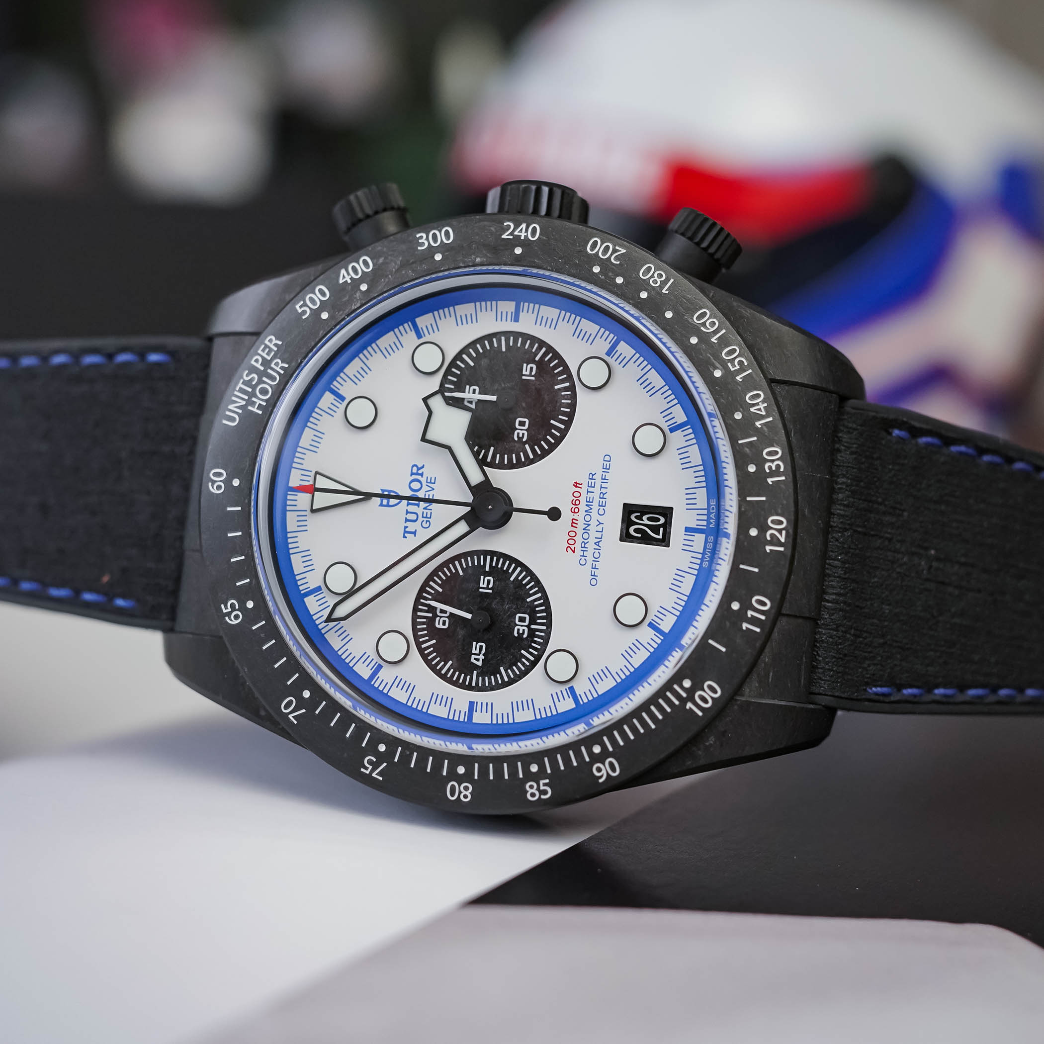 Solidifying its ties to Formula 1 and the Visa Cash App Racing Bulls team, Tudor released the Black Bay Chronograph Carbon 25 earlier this year. Relying on its stout Black Bay Chronograph, it’s only natural to use carbon fibre in such a heavily motorsport-inspired watch. The case is entirely crafted from the lightweight material, extending all the way to the chronograph sub-dials. The dial itself is stark white with blue details, taking on the team’s colours for this season. A cool touch is the use of carbon endlinks for the hybrid-leather strap, closing the gap between the strap and case. Only 2,025 will be made for a price of EUR 7,400.