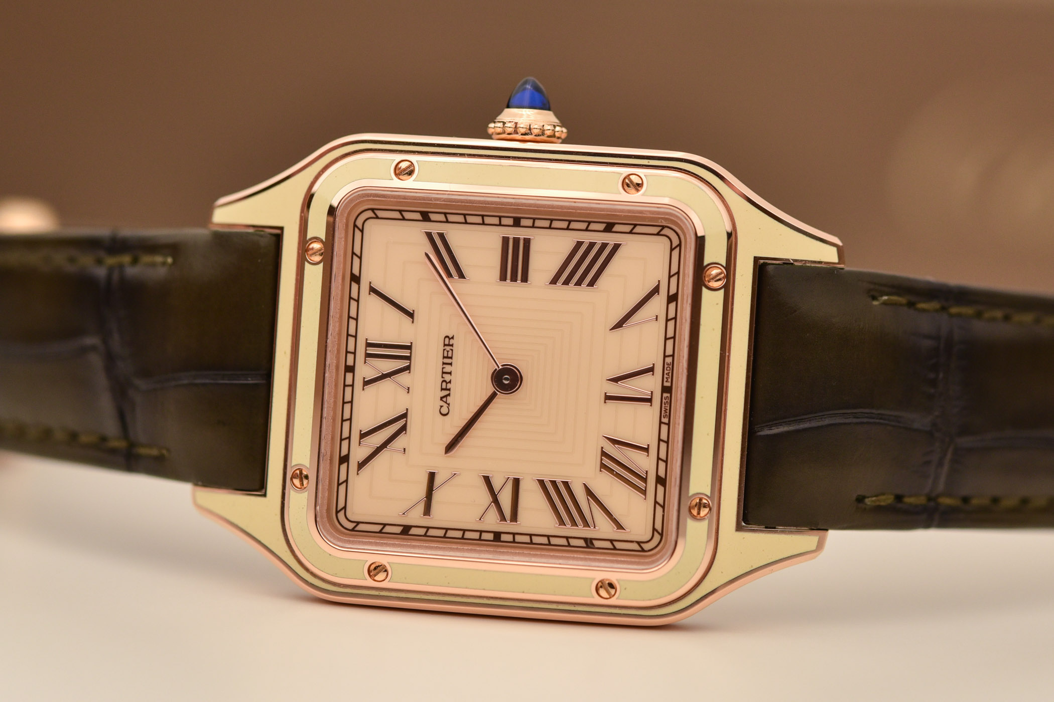 Cartier updated their signature Santos-Dumont, the wristwatch inspired by the model designed for aviation pioneer Alberto Santos-Dumont in 1904. This limited-edition watch is cased in rose gold covered with ivory lacquer. The matching colour dial features a concentric square pattern. With it, the Santos feels somehow vintage yet modern. Inside is the hand-wound 430MC calibre based on the ultrathin Piaget 430P. More details at www.cartier.com.