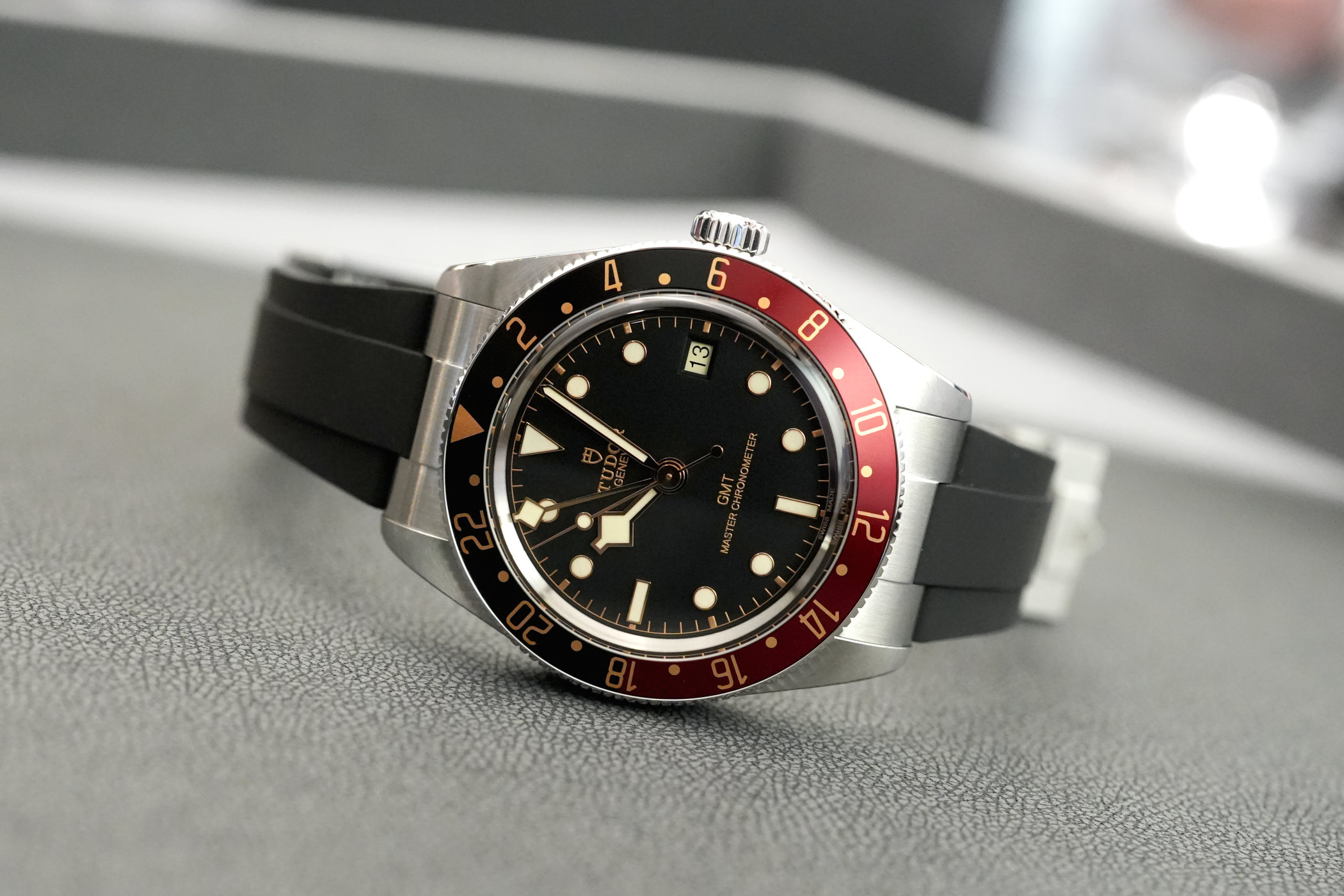 With last year’s Black Bay Burgundy, Tudor took the first step in expanding its METAS Master Chronometer certification, and this year, that expansion continues. Not only in the time-only Black Bay, but now also in a GMT model. The new Tudor Black Bay 58 GMT neatly combines the compact proportions of the BB58 line with the in-house automatic GMT movement in a black, red and gilt colour scheme. It’s available on either a riveted steel bracelet or a rubber strap, both fitted to the stainless steel micro-adjustable T-Fit folding clasp. This handsome and very practical package is yours for CHF 4,100 on a rubber strap or CHF 4,300 on a bracelet.
