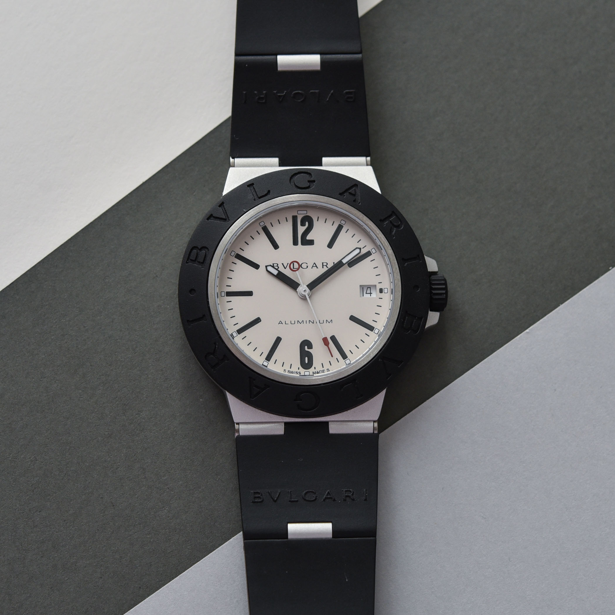 Ten years later, and emboldened by the success of these heavily branded models, Bvlgari decided to push the envelope and experiment with a radical combination of aluminium and rubber for its Aluminio watch collection. Although rubber and aluminium might not strike us as being particularly vanguard nowadays, I can assure you that back in 1998, this mix was unconventional, to say the least. Although Hublot’s Italian founder Carlo Crocco shocked Baselworld 1980 with his gold watch and black rubber strap, Bvlgari went one step further and produced a case made from aluminium, a lightweight metal usually relegated to bezels.