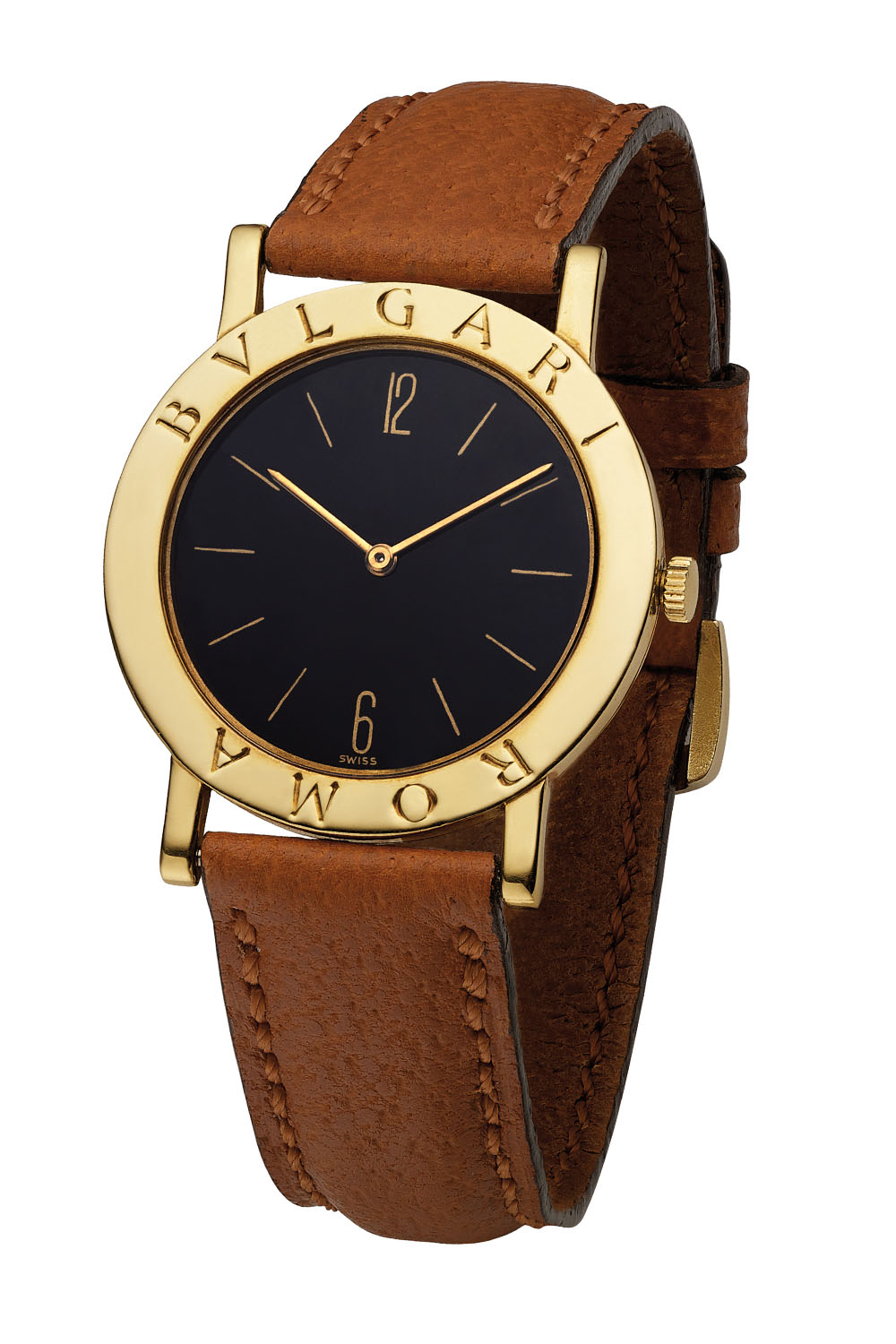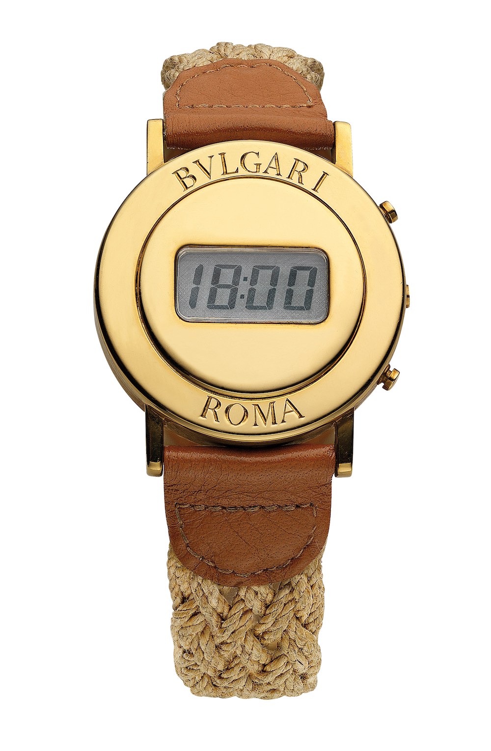 The original design of the Bvlgari Bvlgari, with its signature cylindrical case and bezel engraved with the brand’s name and Roma, was first introduced in 1975 as a limited edition gift for 100 of Bvlgari’s best clients. With its unexpected combination of a yellow gold shine, a classic round case, engraved bezel and digital display (very 1970s indeed), this exclusive and rare watch was the starting point to one of Bvlgari’s most emblematic designs. In the same vein, its plaited rope with leather trim strap, reminiscent of the Roman attachments typically used in antiquity, it was still very much Bvlgari. This watch celebrated the deep connection of the Bulgari family to Rome and made Bvlgari the very first brand to engrave its name on the case of a watch. And the watch was a success.
