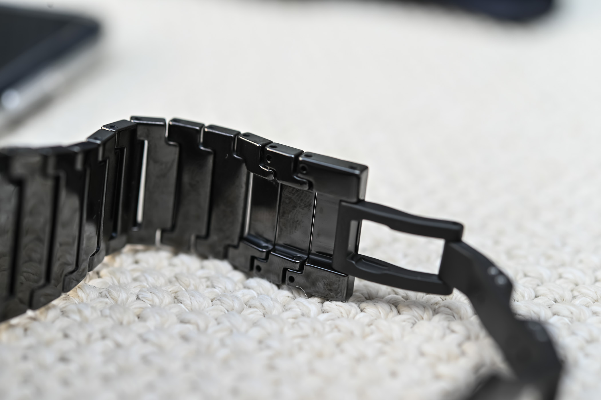 As you can see from the pictures – and probably guessed from the name – the case and bracelet are now a mix of polished and brushed ceramic. Although there are clearly more polished surfaces than brushed. The matte surfaces serve to provide a sense of contrast and prevent the watch from being too “shiny”. What I really love about this watch though is the way it plays with and reflects light. Sometimes it takes on an almost liquid chrome-like appearance. Other times it’s very dark and moody, leading it to appear far more understated than it actually is. The same can be said for the black ceramic dial, which features contrasting polished hands and indices to enhance legibility – which is, in the metal, really not that bad at all and easy to read.